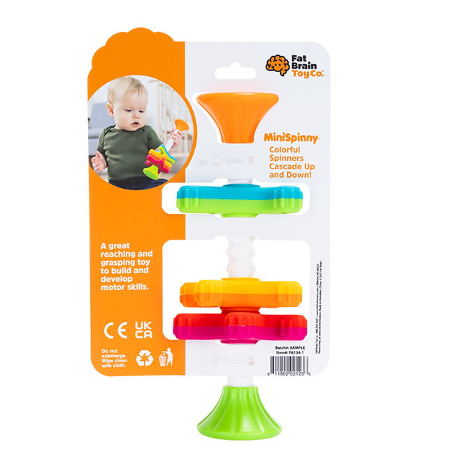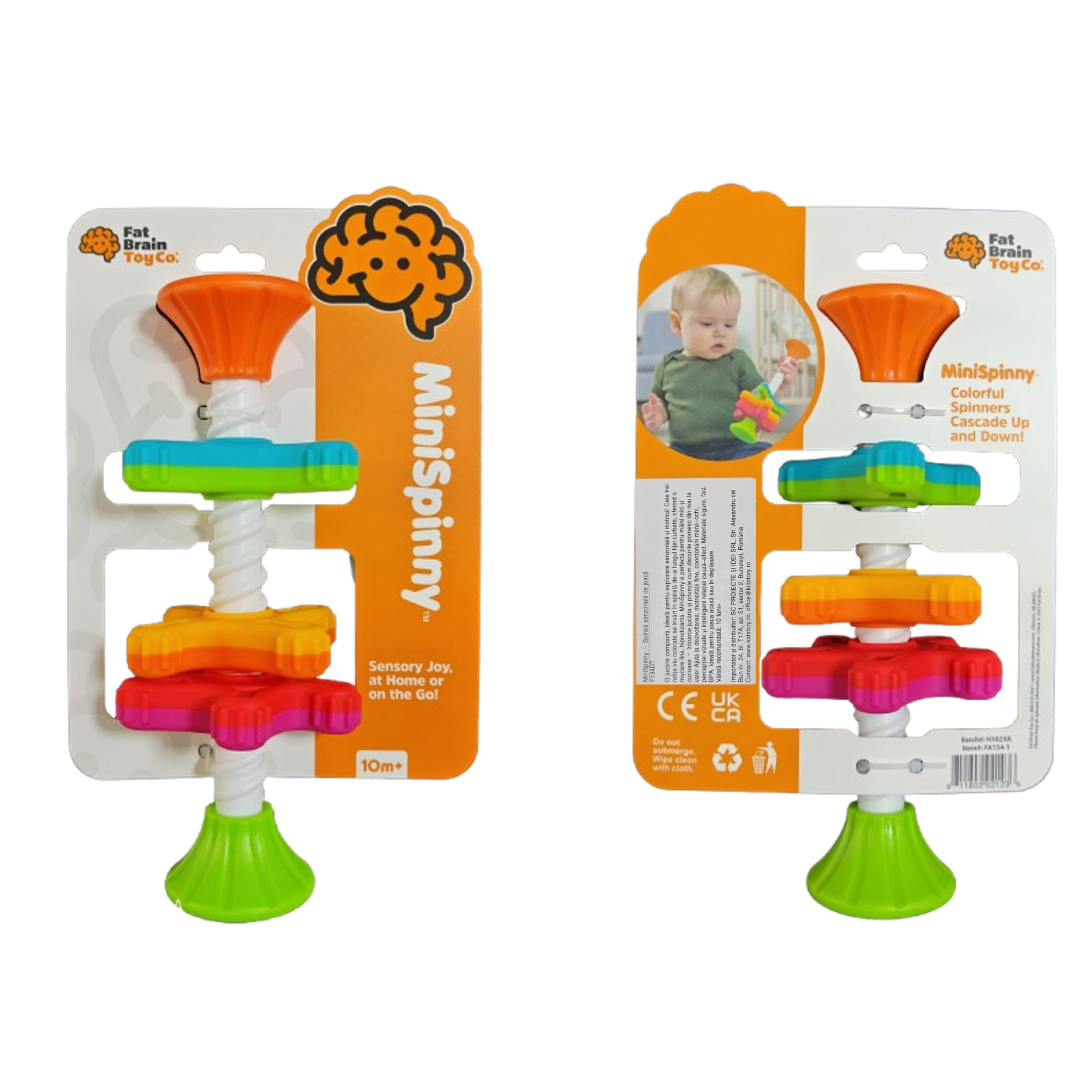 MiniSpinny – jucarie senzoriala de insurubat este o jucarie interactiva care transforma joaca intr-o experienta educativa, stimuland simturile, motricitatea si gandirea copilului. Prevazuta cu 3 elice colorate care se rotesc si coboara pe un ax spiralat, jucaria capteaza atentia si incurajeaza explorarea activa.