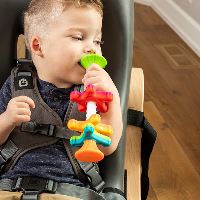 Prin designul sau intuitiv, copilul invata sa prinda, sa roteasca si sa observe miscarea, dezvoltandu-si coordonarea si curiozitatea intr-un mod natural si distractiv.