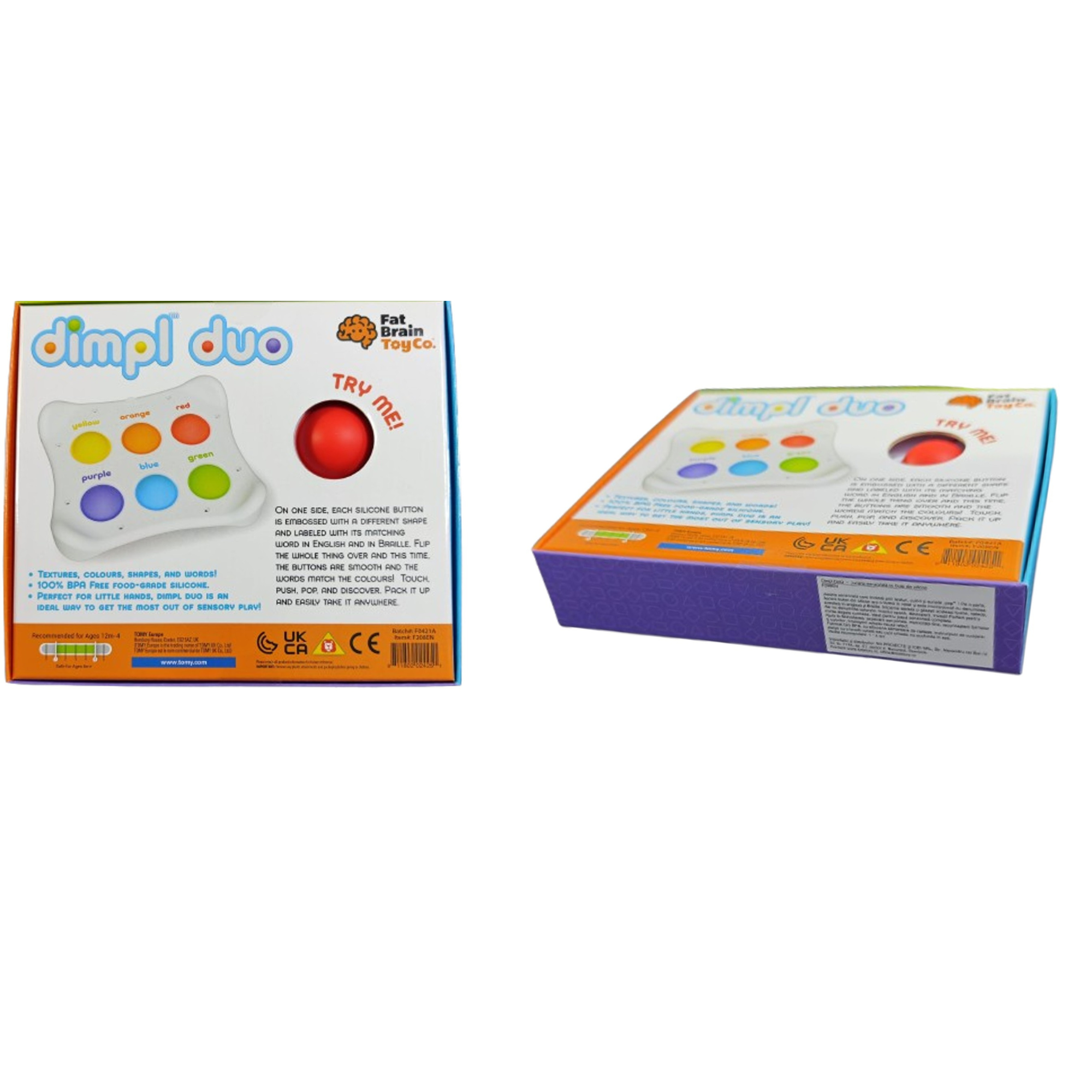 Dimpl Duo – jucarie senzoriala educativa cu bule din silicon este o jucarie inovatoare care combina stimularea tactila cu invatarea formelor si culorilor, oferind o experienta completa de explorare pentru cei mici. Designul sau interactiv include butoane din silicon care pot fi apasate pentru efectul “pop”, atragand atentia si incurajand joaca activa.