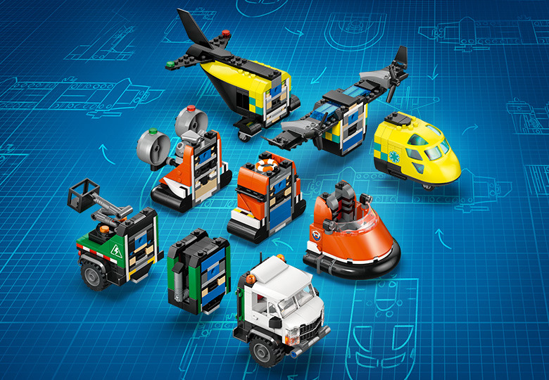 Datorită designului modular, copiii pot amesteca și combina piesele pentru a crea numeroase vehicule personalizate, adaptate diferitelor scenarii de acțiune și salvare. Setul este completat de 3 minifigurine – șofer de autospecială, membru al Pazei de Coastă și medic – gata să intre în acțiune în misiuni aeriene, maritime sau terestre.