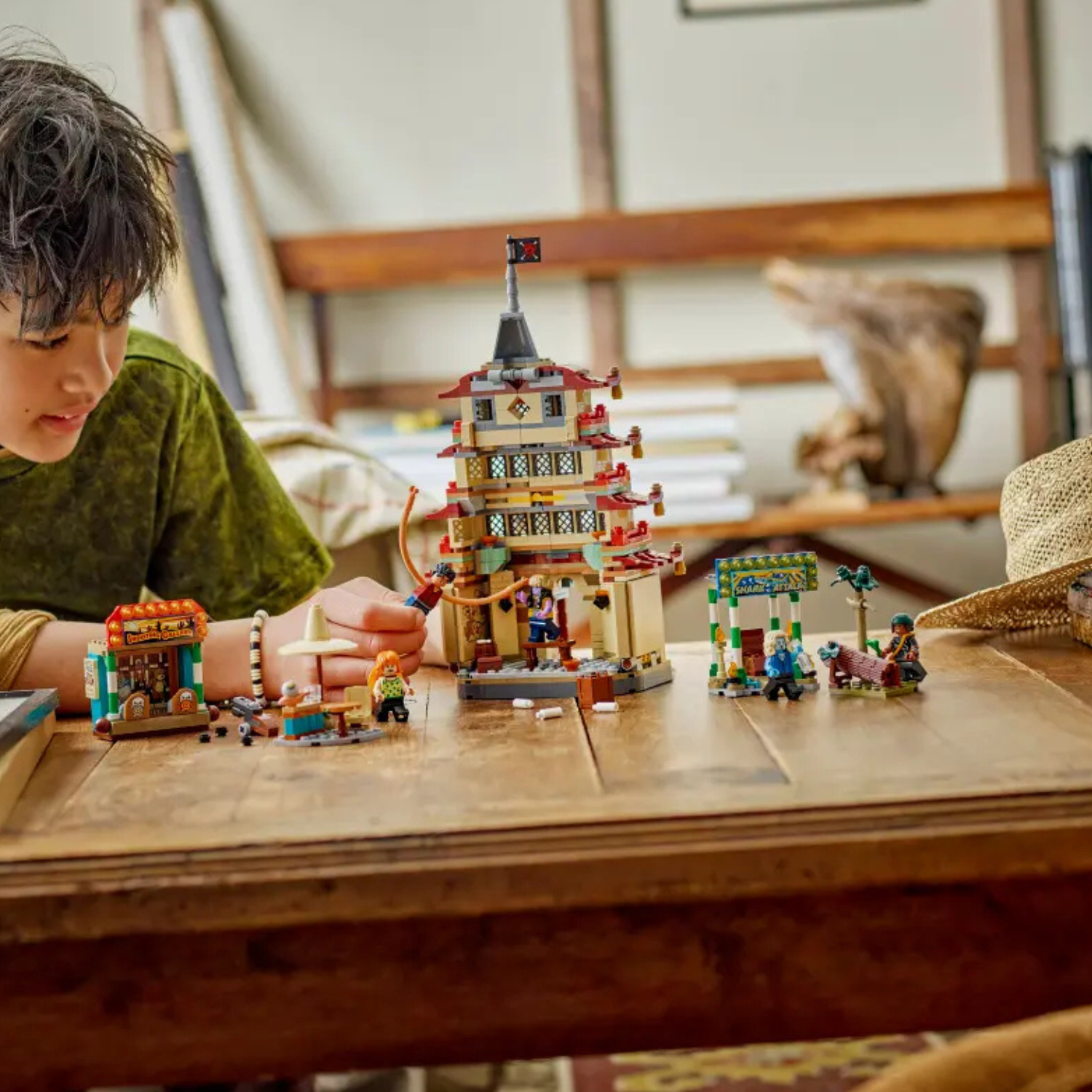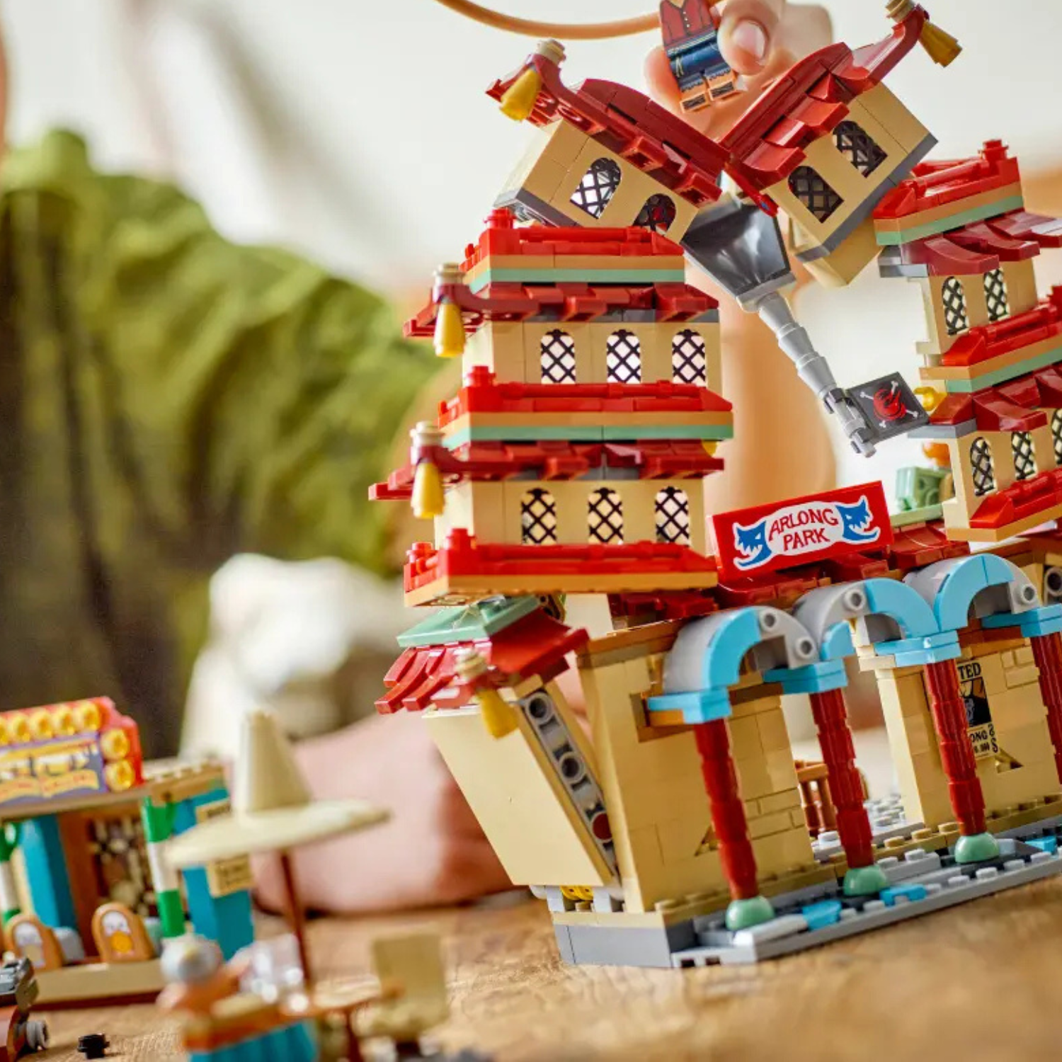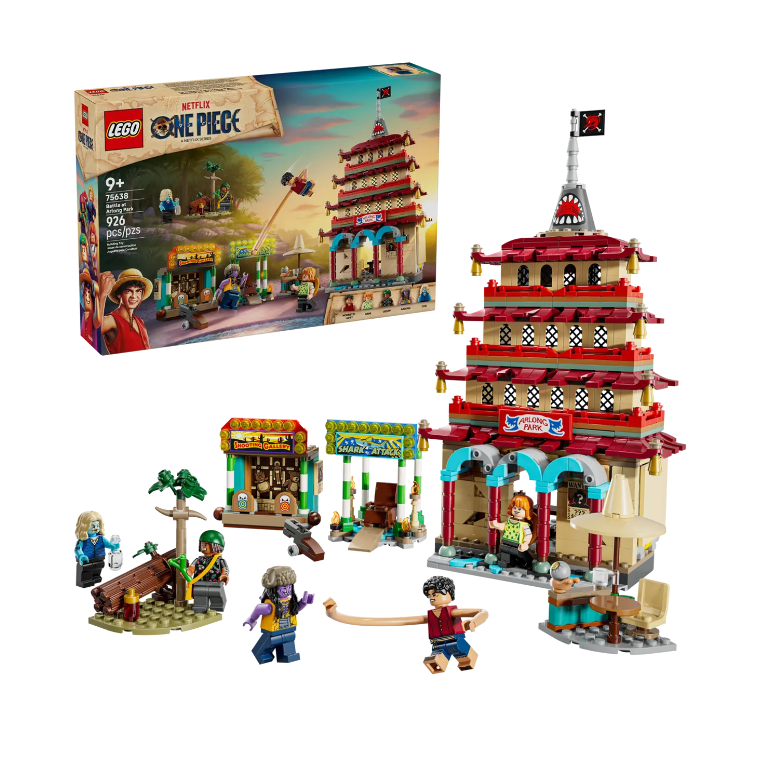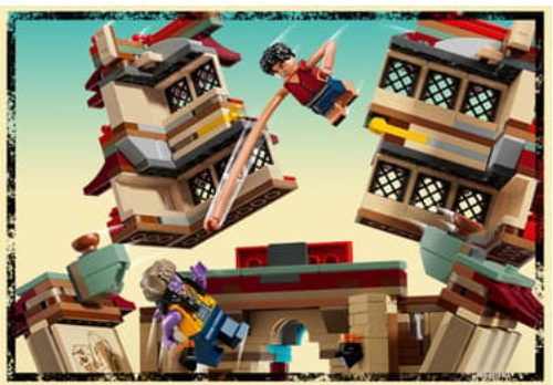 Setul de construcție include minifigurinele Luffy (echipat cu piese de alungire a brațelor), Nami, Usopp, Arlong și Chu. Copiii pot prăbuși modelul de pagodă lovind acoperișul cu degetul, iar pavilionul de tragere are ținte distractive pentru lansatoarele de piroane.