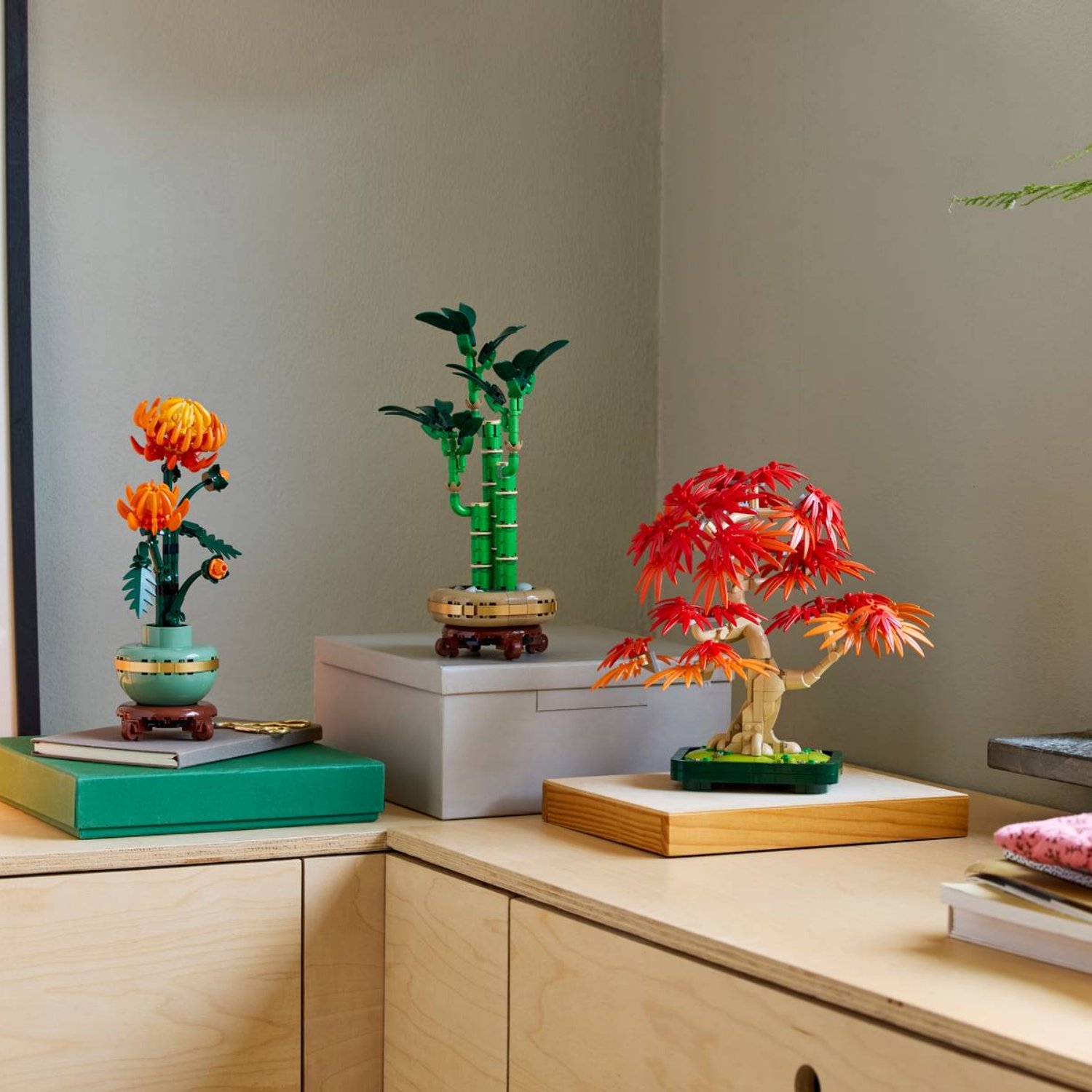 Surprinzând frumusețea și culorile vii ale unui bonsai de arțar japonez roșu real, această plantă LEGO are frunze roșii și portocalii și este așezată într-un ghiveci verde-închis. Relaxează-te pe măsură ce creezi planta, apoi folosește modelul ca decorațiune pentru casă sau birou, pentru a aduce o notă de calm și seninătate oriunde este așezat.