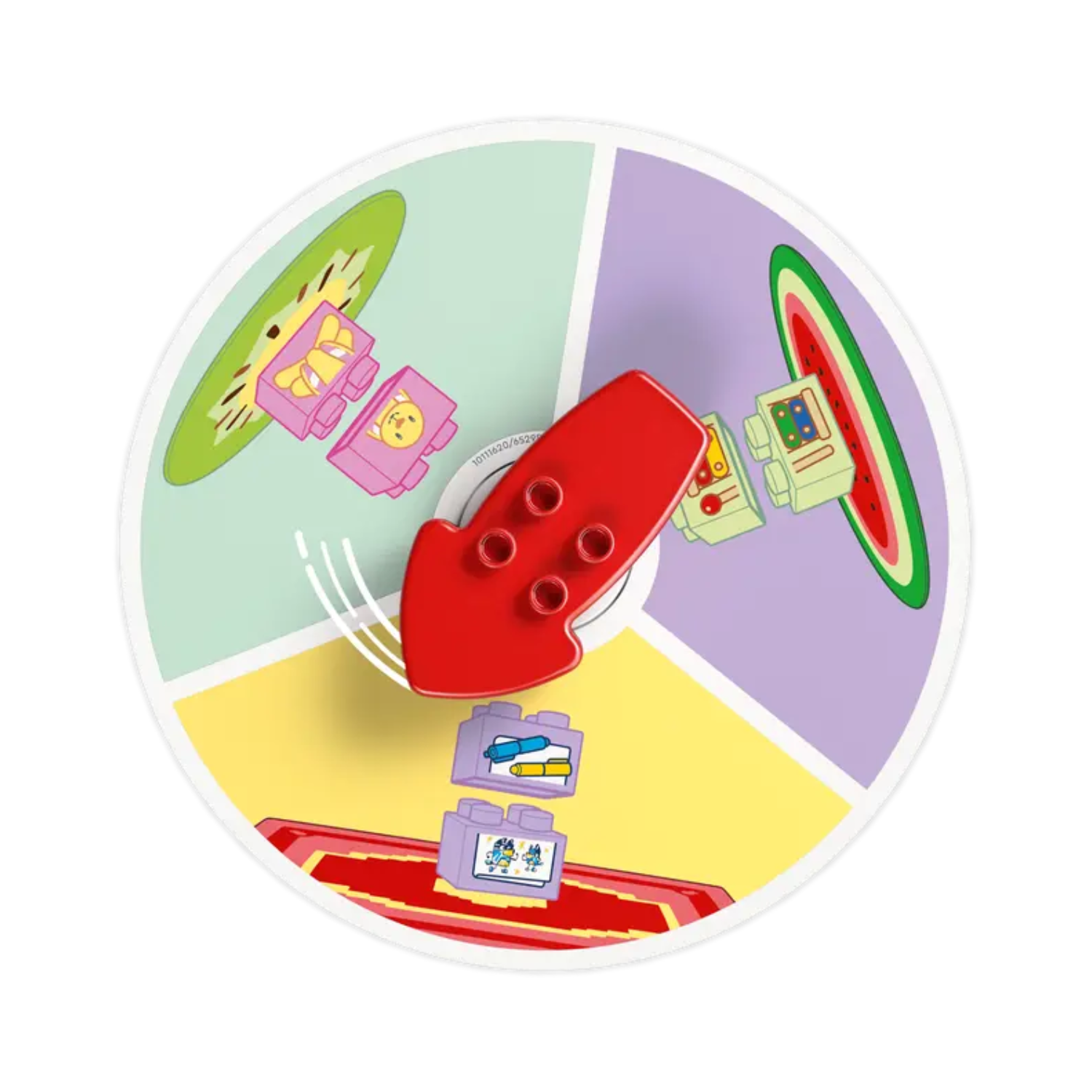 Părinții pot ascunde figurine și cărămizi în spatele ferestrelor casei, iar copiii învârt săgeata pentru a descoperi piesele corecte. Setul include camere pline de detalii familiare, masa cu 3 scaune și figurinele Blue, Bingo și Chilli. Cu 83 de piese colorate, această jucărie este ideală pentru joaca educativă și pentru momente de familie.