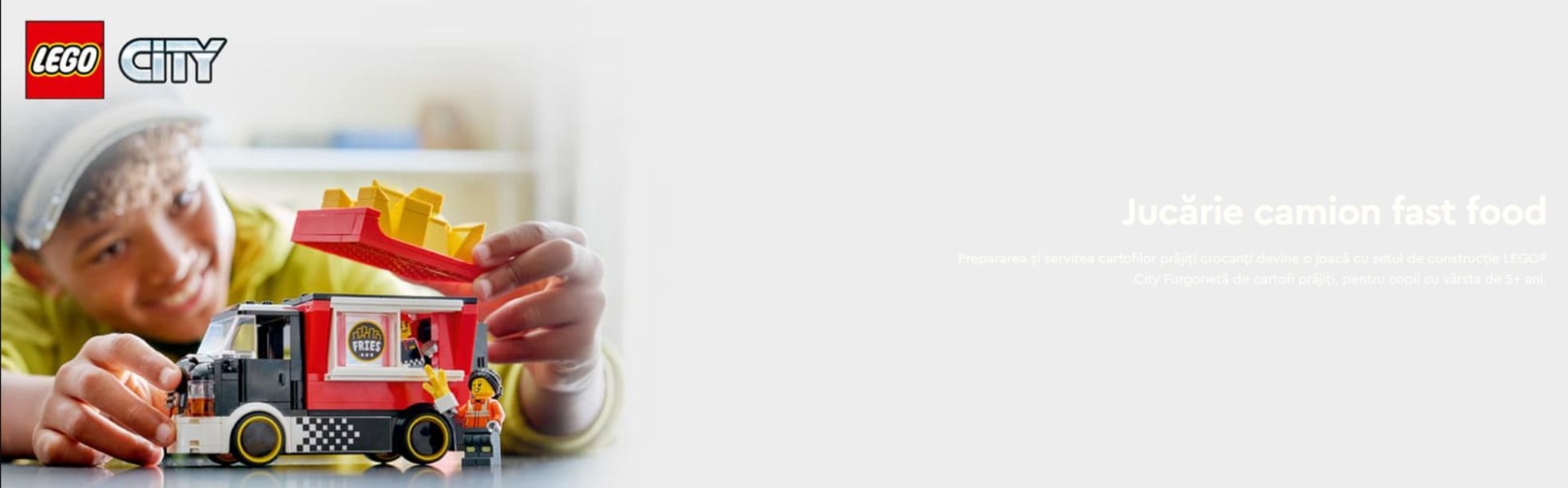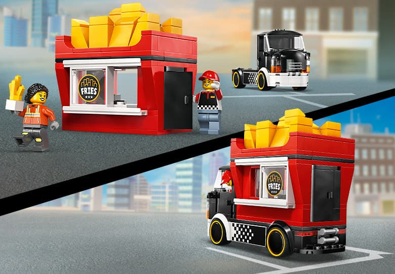 • FURGONETĂ DE JUCĂRIE PENTRU COPIII DE 5 ANI ȘI MAI MARI – Distracția începe cu servirea cartofilor prăjiți crocanți cu setul LEGO® City Furgoneta de cartofi prăjiți, perfect pentru copiii care adoră joaca fantezistă