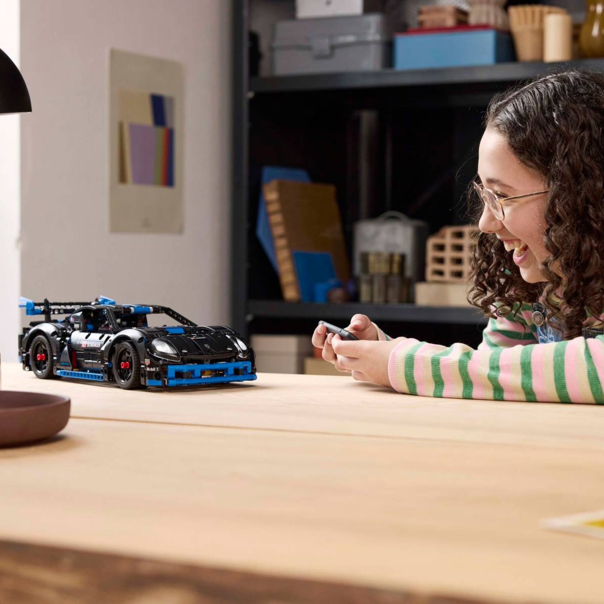 Oferă copiilor de 10+ ani un proiect palpitant în care asamblează jucăria LEGO® Technic Mașina de curse Porsche GT4 e-Performance (42176). Acest model de mașină de curse telecomandat conține numeroase dotări interactive și este cea mai rapidă mașină (din august 2024) din gama LEGO Technic CONTROL+. Accesează aplicația CONTROL+ pentru a controla direcția, farurile și a primi feedback în timp real pe măsură ce copiii își perfecționează abilitățile de conducere.