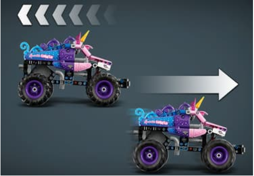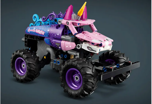 Setul LEGO Technic Monster Jam Sparkle Smash aduce acțiunea spectaculoasă din arena Monster Jam în joaca copiilor de peste 7 ani. Camionul este echipat cu motor cu arc pentru lansări rapide și include elemente vizuale inspirate de unicorn, oferind o experiență de construcție și joacă dinamică.