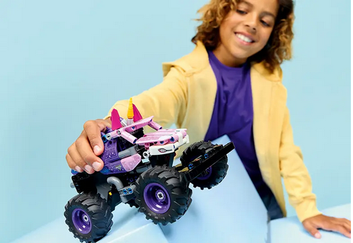 Acest camion gigant elaborat include detalii autentice precum stelele strălucitoare și emblematicul corn de unicorn, inspirate de adevăratul camion Monster Jam Sparkle Smash™. Setul este ideal pentru copiii care adoră vehiculele LEGO®, jucăriile cu unicorni și senzațiile tari.