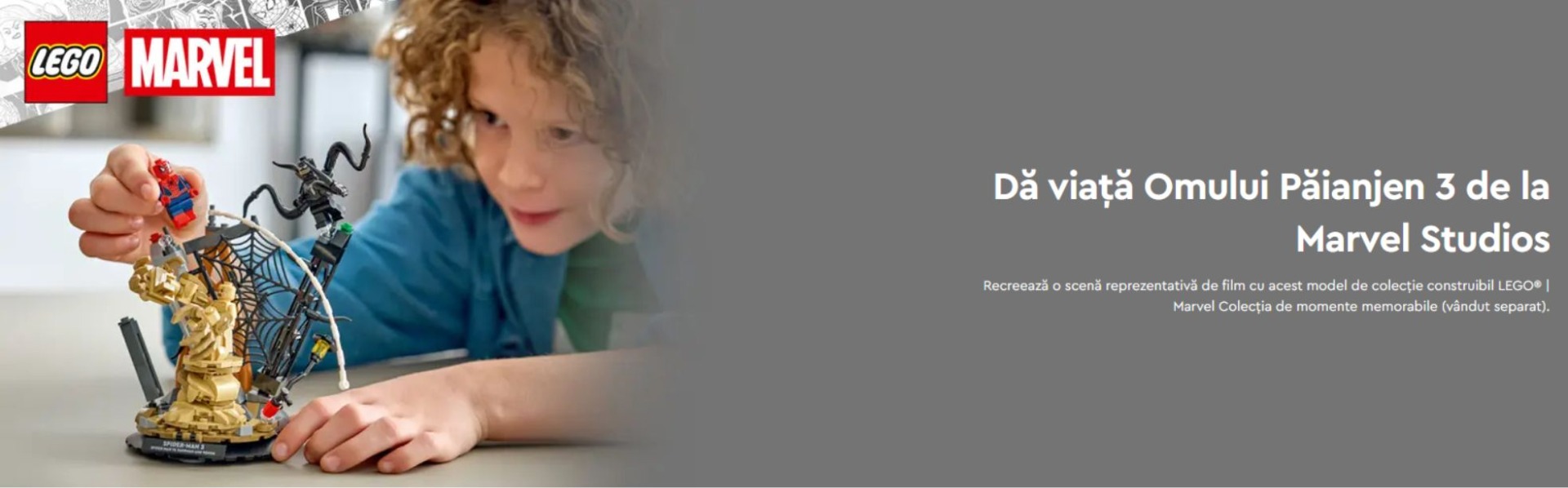 Retrăiește una dintre cele mai memorabile confruntări din universul Marvel cu setul de construcție LEGO® Marvel Bătălie memorabilă: Omul-Păianjen vs Sandman (76334). Conceput pentru copii, băieți și fete de 9 ani și mai mari, acest set aduce la viață scenele emblematice din filmul Omul-Păianjen 3 de la Marvel Studios, combinând joaca de rol cu posibilități atractive de expunere.