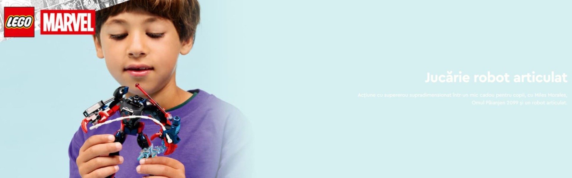 • UN UNIVERS DE SETURI LEGO® ǀ MARVEL – Transportă copiii în aventuri fanteziste, interactive, cu o serie de personaje emblematice și scene pline de acțiune din filmele Marvel
