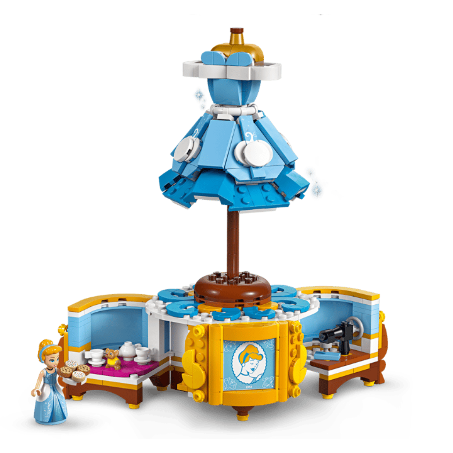 Sărbătorește moda și 75 de ani de la lansarea filmului Disney Cenușăreasa cu fanii de 9 ani și mai mari. Setul de construcție LEGO® ǀ Disney Princess Rochia Cenușăresei (43266) conține o rochie, un suport pentru rochii și un stativ de etalare cu surprize. Setul include și un personaj minipăpușă LEGO ǀ Disney și un personaj LEGO ǀ Disney șoricel pentru aventuri distractive. Setul de construcție include elemente pentru a decora stativul de etalare și o plăcuță de profil a Cenușăresei.
