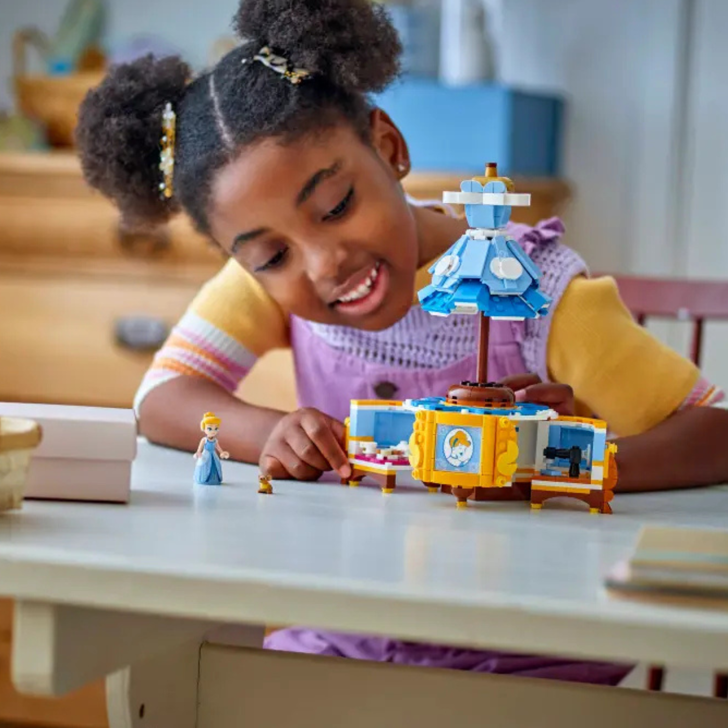 Acest set de construcție Disney pentru fete și băieți va fi acel set pomenit de toată lumea, care oferă copiilor mai mari o construcție mai elaborată și care stimulează joaca pe tema modei și include o piesă grozavă pentru etalare. Fanii Disney Princess mici și mari deopotrivă vor adora să-și exploreze pasiunea pentru modă cu un personaj Disney Princess îndrăgit. În plus, setul se combină cu alte seturi de construcție LEGO ǀ Disney (vândute separat) pentru mai multă distracție. Constructorii au parte și de o experiență de construcție intuitivă prin aplicația LEGO Builder, unde pot apropia și roti modelele în 3D, pot salva seturi și își pot urmări progresul.