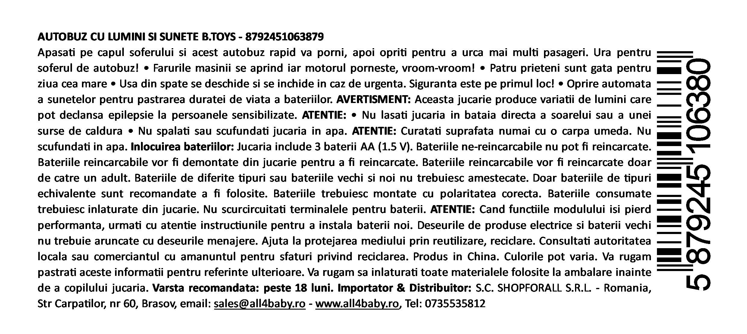 Acest autobuz interactiv stimulează imaginația și creativitatea copiilor prin funcții captivante: lumini, sunete și roți care se învârt, toate activate prin simpla apăsare a capului șoferului. Cu 5 figurine incluse și o ușă din spate funcțională, micuții pot explora diverse scenarii de joc, dezvoltându-și abilitățile motorii și cognitive. Potrivit pentru copii între 18 luni și 5 ani.