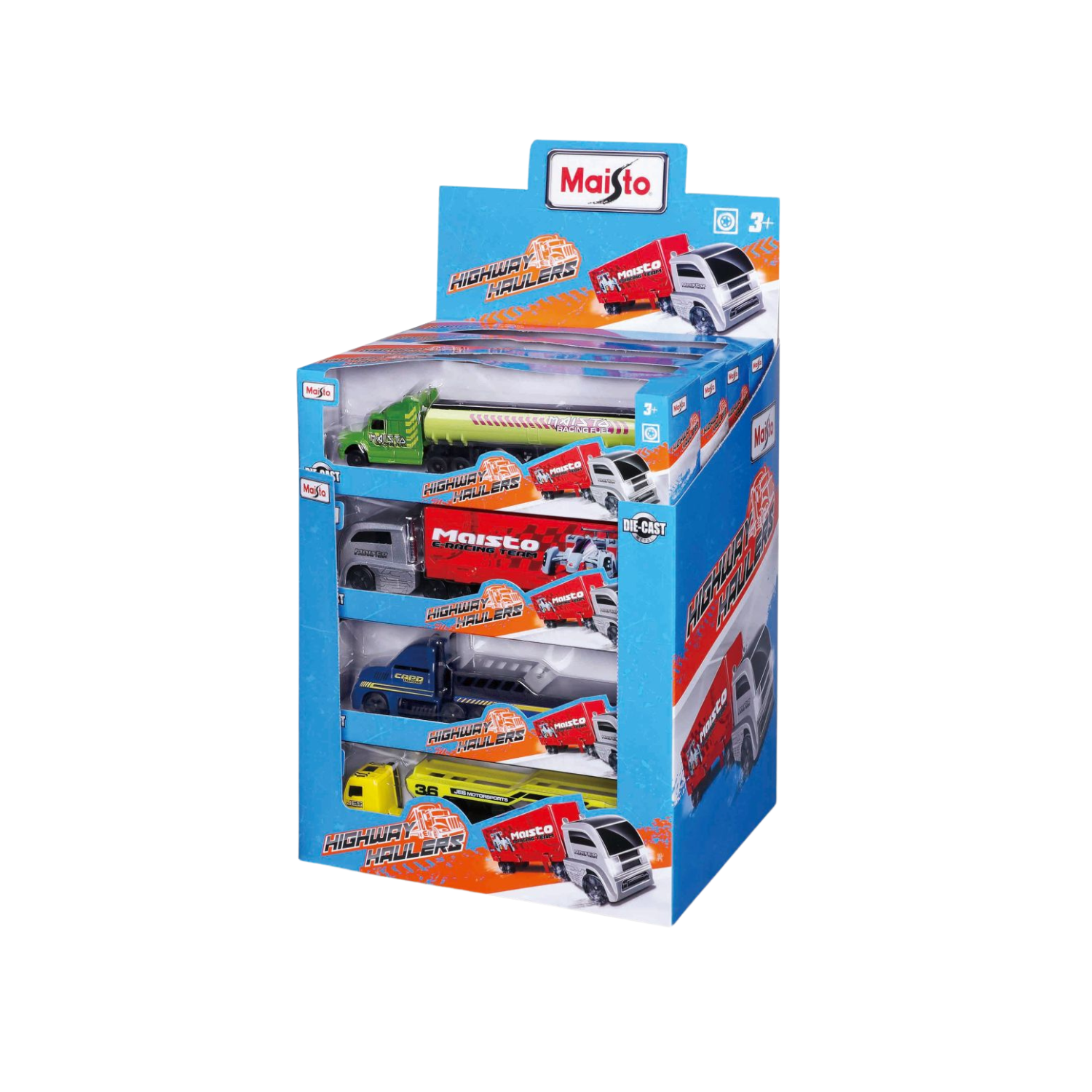 Descoperă puterea și realismul cu camionul transportor Maisto Highway Haulers, o piesă de colecție și joacă inspirată din vehiculele de transport reale. Fiecare camion este realizat din metal turnat sub presiune (die-cast) și componente din plastic de calitate, oferind durabilitate și detalii uimitor de realiste. Cabină atent proiectată, roți libere și transportor adaptat pentru diferite tipuri de încărcături — totul pentru o experiență autentică. Ideal pentru copiii pasionați de camioane, dar și pentru colecționari, acest model redă perfect aspectul și funcționalitatea unui camion real.