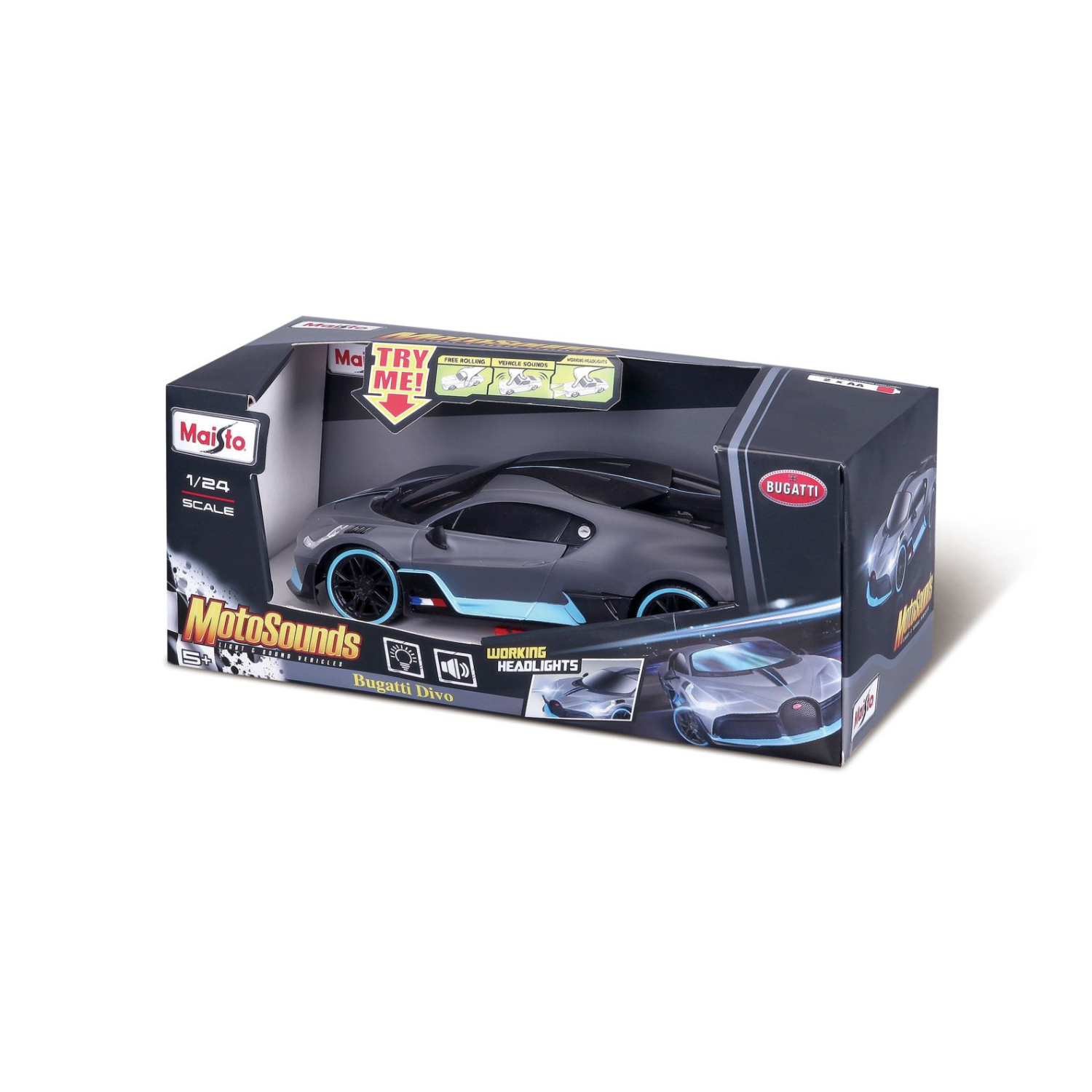 Adaugă un plus de rafinament colecției tale cu mașinuța Bugatti Divo Maisto, o replică la scara 1:24 din gama MotoSounds care combină eleganța designului aerodinamic cu efecte sonore și luminoase realiste. Caroseria gri mat cu accente albastre vibrante și roți detaliate redă fidel estetica impresionantă a supercarului Bugatti Divo. Apăsând pe capotă, poți auzi sunetul puternic al motorului și poți observa farurile care se aprind, oferind o experiență autentică și captivantă. Modelul este prevăzut cu roți libere („free-wheeling”), perfect pentru joacă sau expunere, și vine cu baterii incluse pentru utilizare imediată.