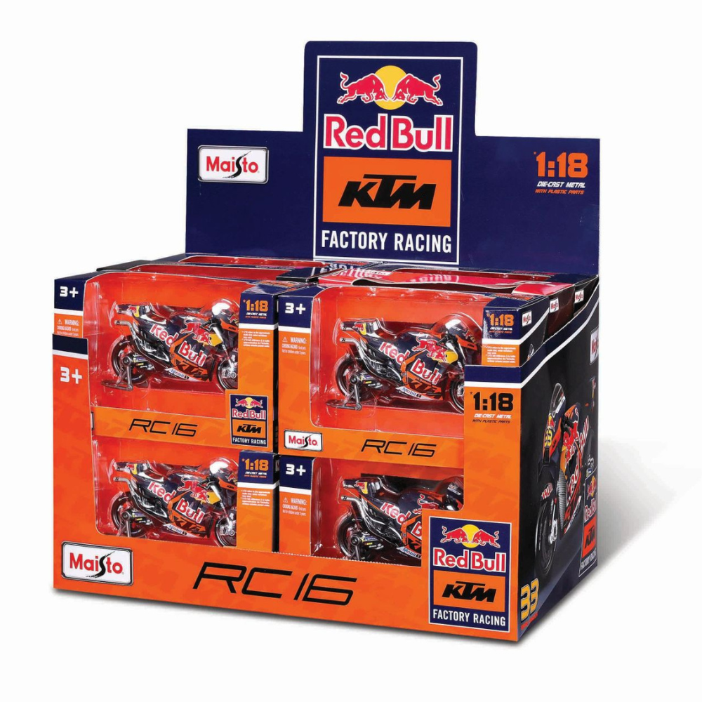 Descoperă motocicleta metalică Red Bull KTM 1:18 de la Maisto, o replică spectaculoasă a modelului real, concepută pentru pasionații de curse și colecționarii de modele auto și moto. Realizată din metal turnat sub presiune (die-cast) și completată cu detalii fine din plastic, această motocicletă Red Bull KTM impresionează prin fidelitatea culorilor, proporțiilor și elementelor grafice oficiale. Modelul reproduce cu precizie designul echipei Red Bull KTM din competițiile MotoGP, oferind o experiență autentică și plină de adrenalină. Ideală pentru expunere, dar și pentru joacă, motocicleta combină realismul și rezistența, fiind un obiect de colecție de excepție pentru orice fan al sporturilor cu motor.