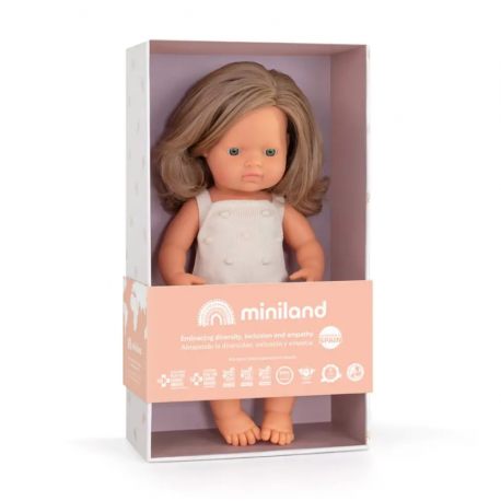 Ultima actualizare a informatiilor de prezentare pentru Papusa Fetita Europeana cu par blond inchis imbracata in salopeta tricotata, 38 cm, 10 luni+, Miniland a fost efectuata la data de 13-11-2025.  |  Raporteaza Descriere Gresita