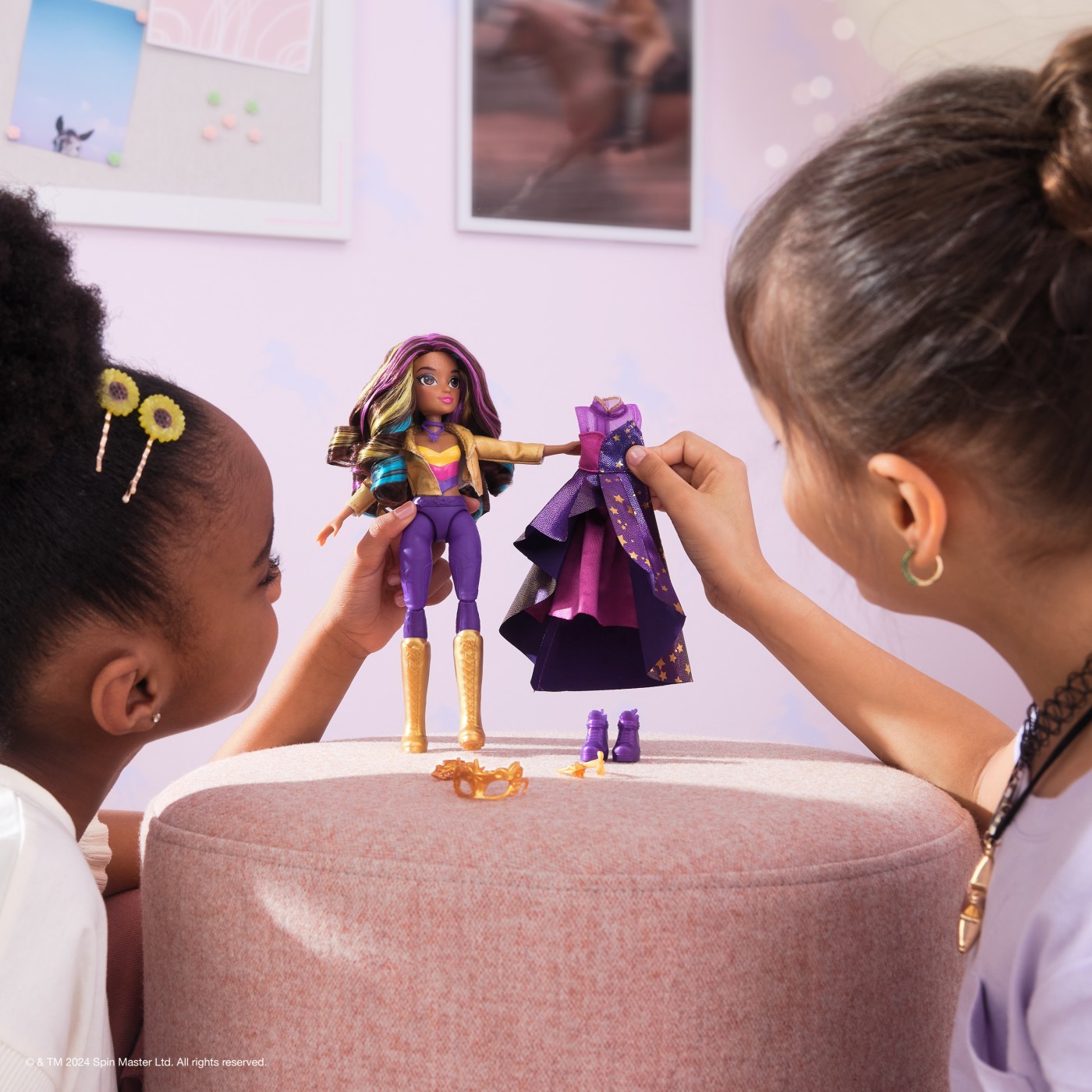 - Tinuta dubla – echipament de calarie si tinuta eleganta de bal, pentru joaca versatila si povesti fara sfarsit.