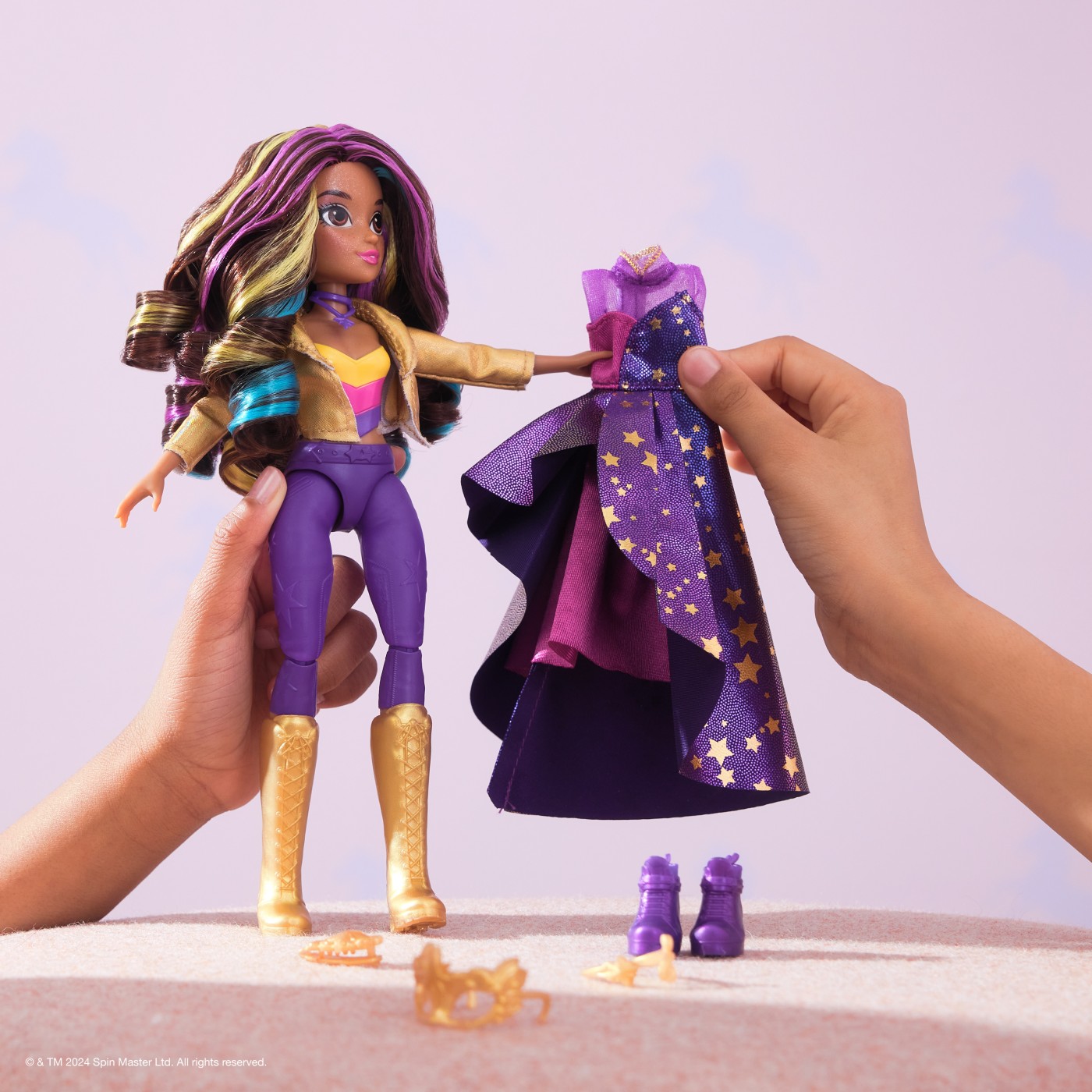 Descopera papusa Sophia Masquerade din colectia Unicorn Academy, inspirata din serialul Netflix si cartile de succes care au cucerit copiii din intreaga lume. Aceasta papusa de 24,1 cm prinde viata cu detalii realiste si accesorii magice, invitand micutii sa recreeze scene din fascinanta lume a Academiei Unicorn. Cu o tinuta eleganta pentru balul mascat, accesorii stralucitoare si par lung suvitat, Sophia este gata sa porneasca in noi aventuri alaturi de unicornul ei, Wildstar Lumina de Curcubeu (vandut separat). Ideala pentru copiii care iubesc povestile cu unicorni, magia si joaca imaginativa.