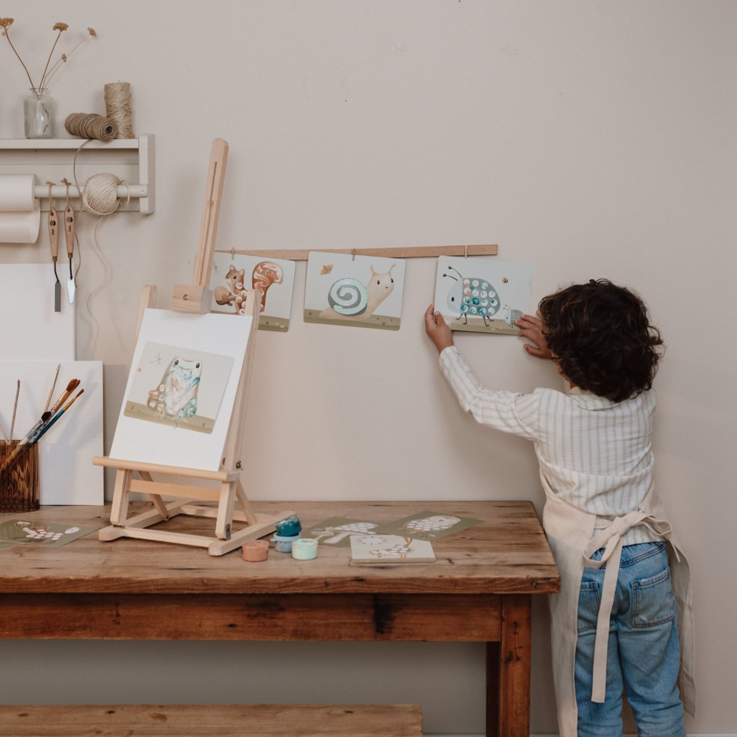 Setul nostru de pictura cu degetele este perfect pentru micii artisti care adora natura. Include 4 culori moi, sigure si usor de spalat, plus cartonase cu animale din padure gata de colorat.