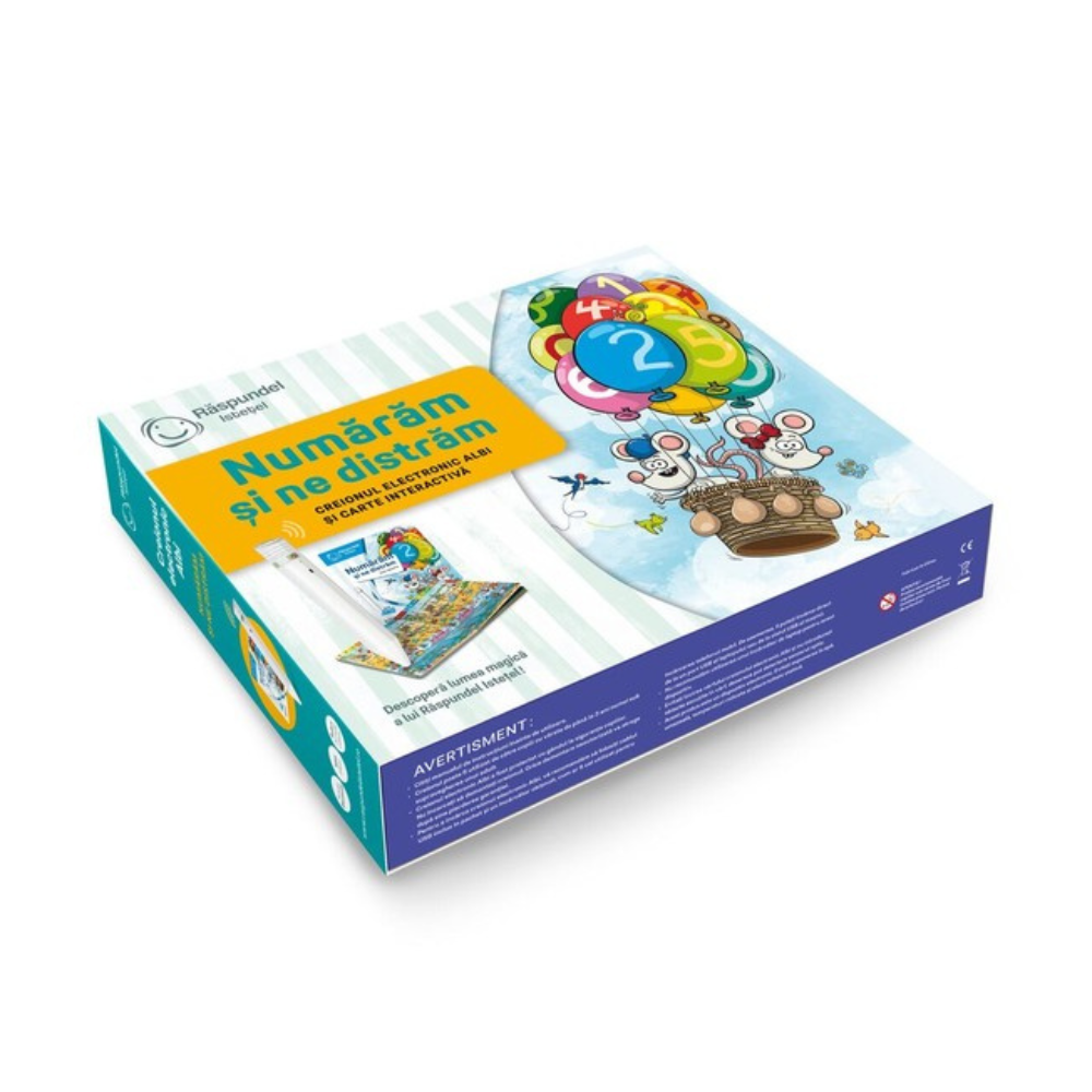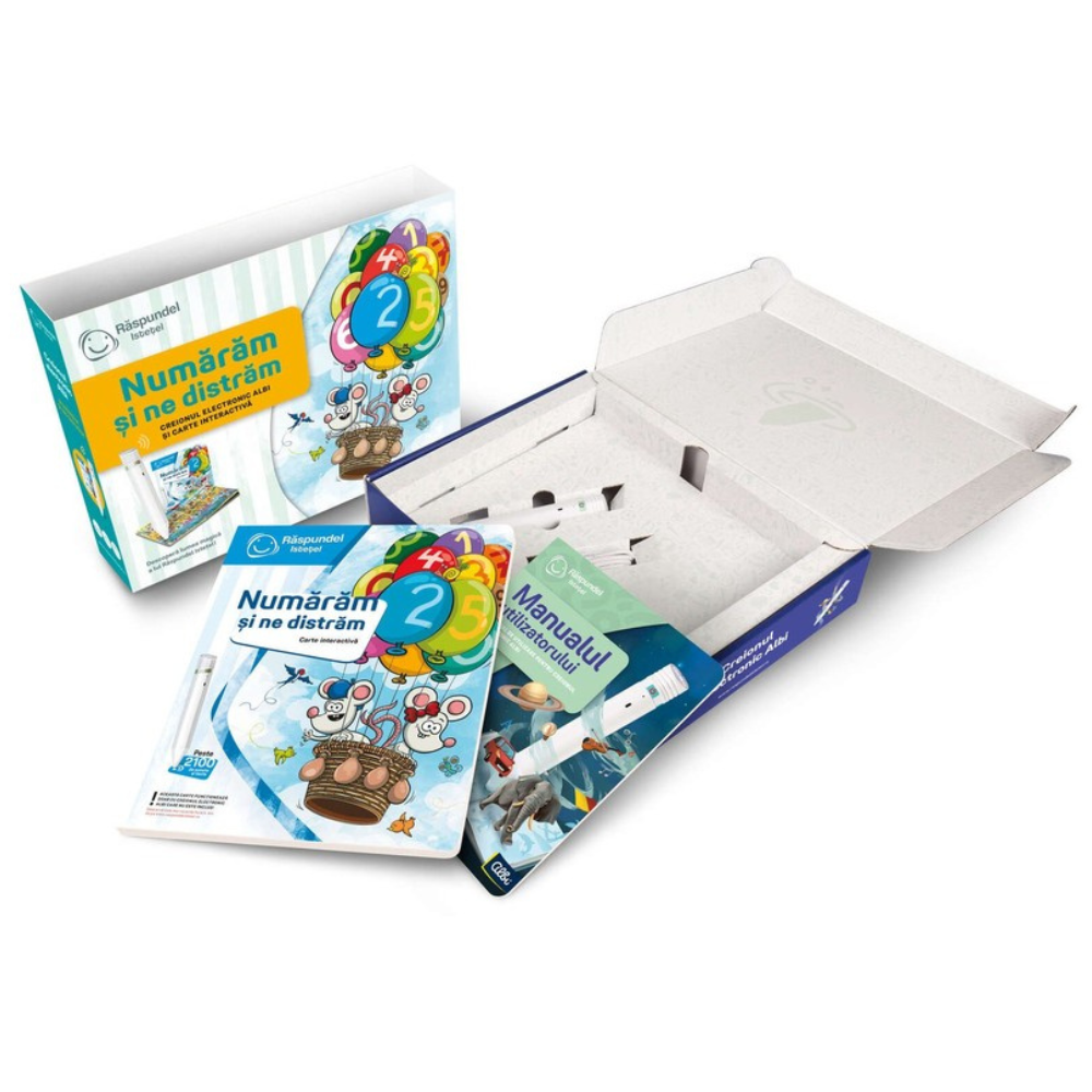 Răspundel Istetel – ALBI 2.0 + Numărăm și ne distrăm este un set educativ interactiv conceput pentru copiii cu vârsta de peste 3 ani. Pachetul conține creionul vorbitor ALBI 2.0 și cartea interactivă „Numărăm și ne distrăm”, oferind o modalitate distractivă și eficientă de a învăța primele noțiuni de matematică și numerație.