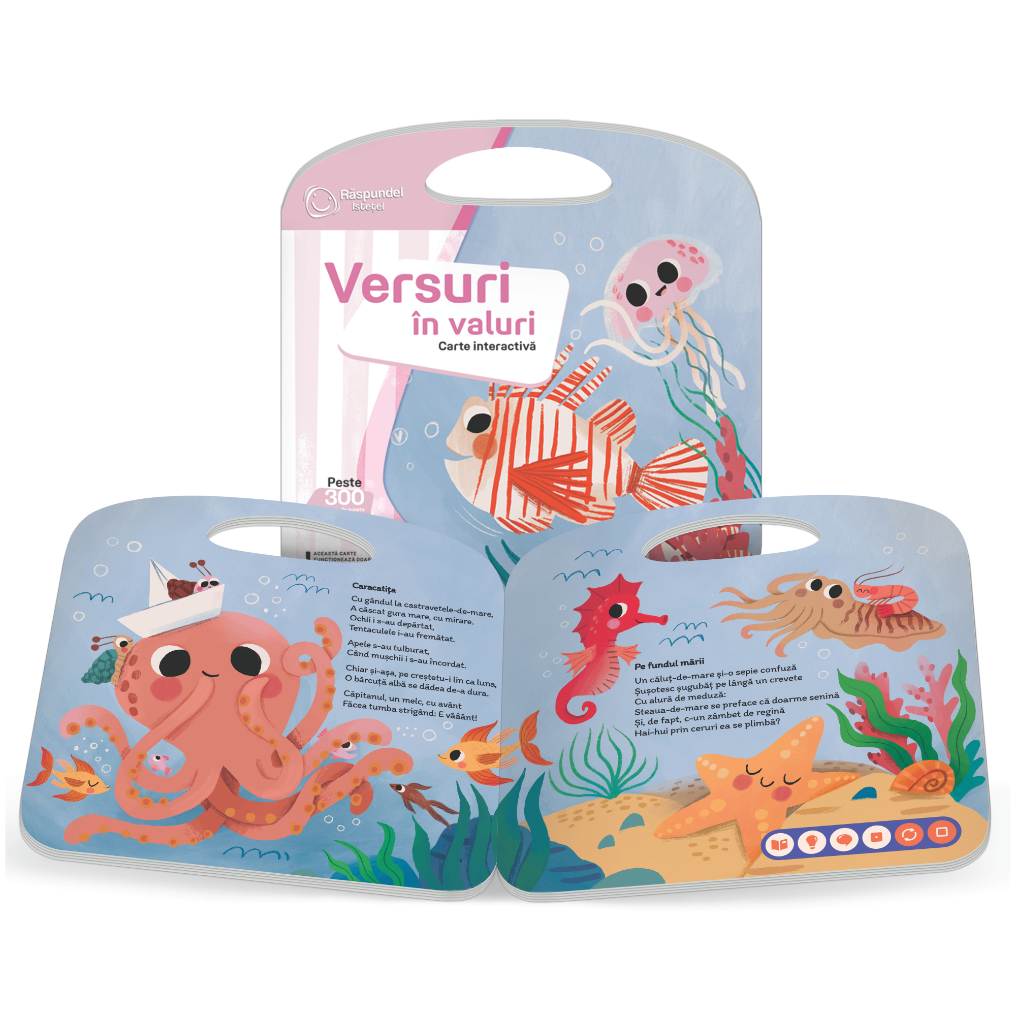 Raspundel Istetel – carte „Versuri in valuri” este o carte interactiva si educativa care ii invita pe cei mici intr-o lume plina de intrebari amuzante, poezii si descoperiri despre universul marin. Prin intermediul versurilor si al jocurilor de explorare, copiii invata intr-un mod distractiv si captivant.