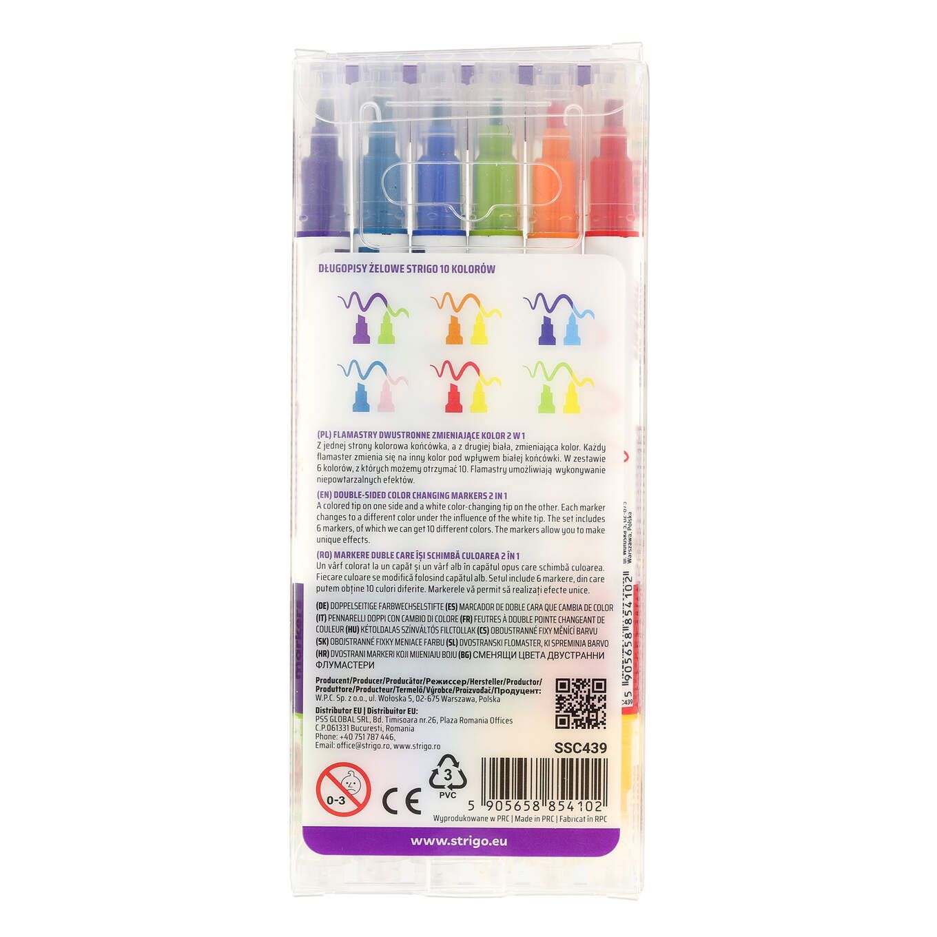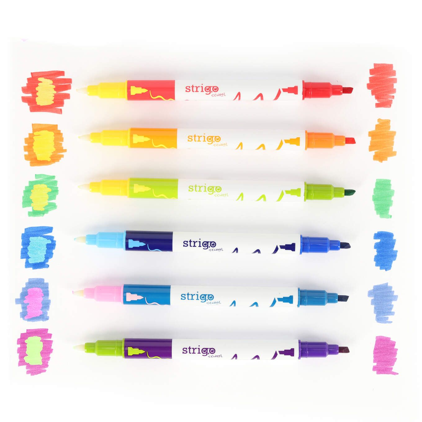 Markerele Strigo duble cu schimbare de culoare oferă o experiență creativă și distractivă pentru desen și colorare. Fiecare marker permite transformarea culorilor, creând efecte interesante și combinații surprinzătoare.
