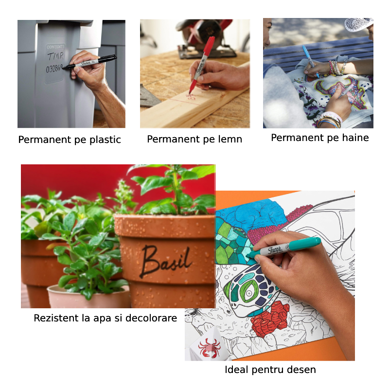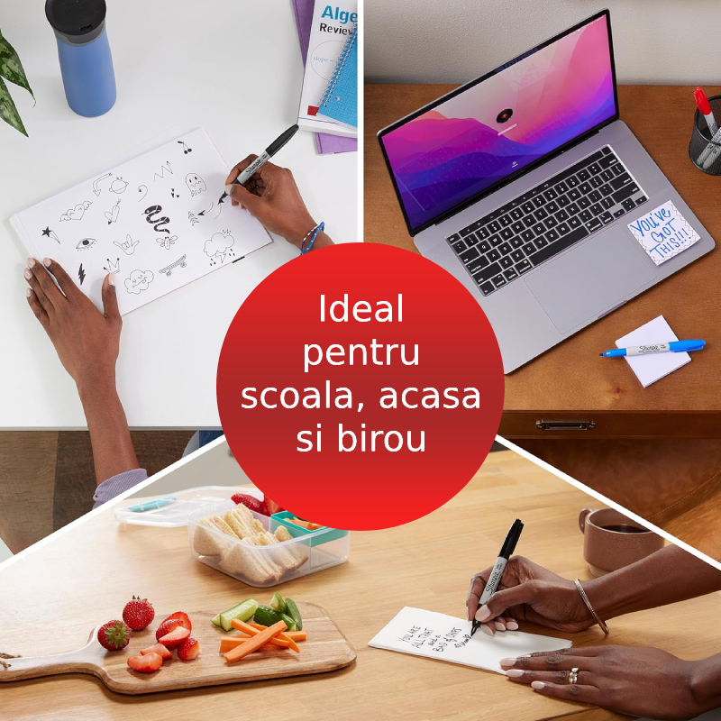 Setul de 4 markere Sharpie Permanente in culori pastel transforma orice suprafata intr-un spatiu de expresie durabila. Cu cerneala ce se usuca rapid si rezista in timp, aceste markere lasa urme clare si vibrante pe hartie, plastic, metal, lemn sau sticla. Varful subtire permite scrierea precisa si realizarea de marcaje fine, in nuante delicate dar vizibile. Perfect pentru notite, scrapbooking, ilustratii sau organizare creativa.