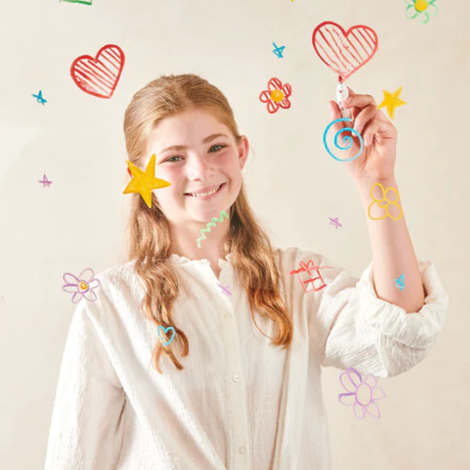 Setul de carioci cu vopsea Vivid Pop! – 8 culori este perfect pentru orice activitate artistică: de la desen pe hârtie și carton până la decorarea suprafețelor creative precum lemn, piatră sau ceramică. Cariocile au o formulă opacă pe bază de apă, ce oferă culori intense și vibrante, ușor de aplicat și potrivite atât pentru proiecte de joacă, cât și pentru hobby-uri artistice.