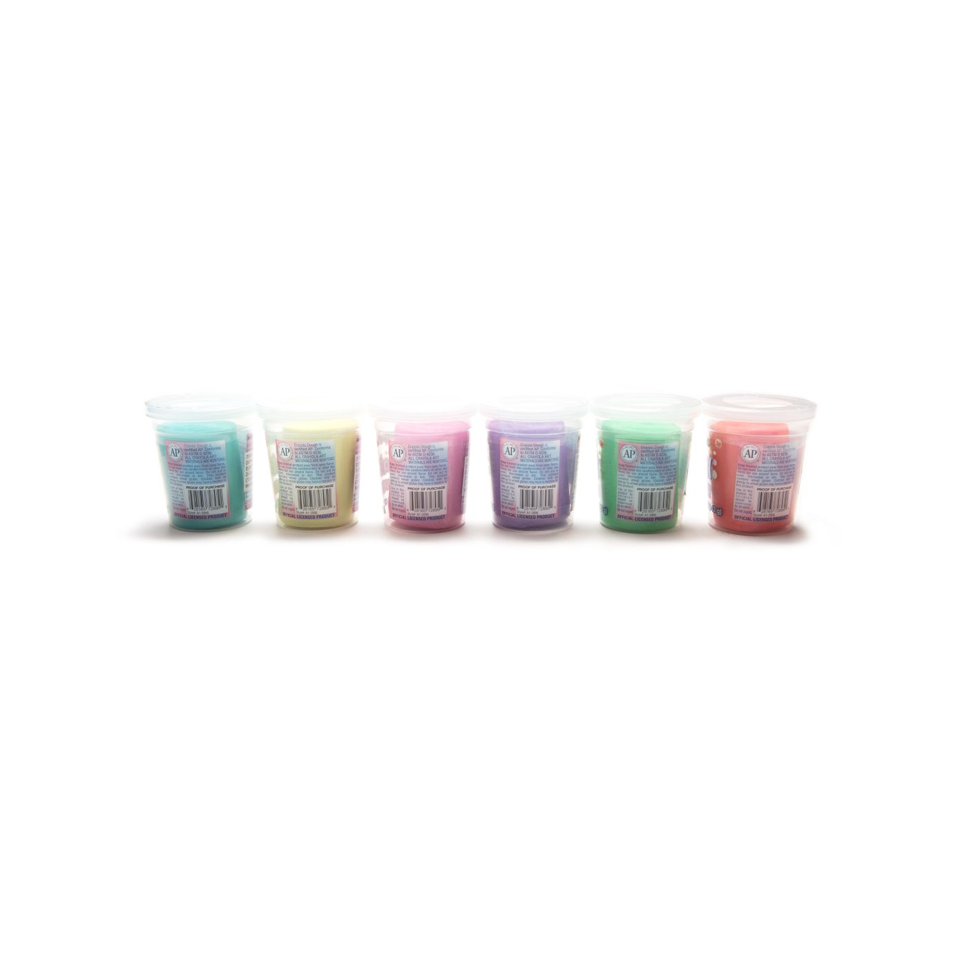 Fiecare borcănaș conține 142 g de plastilină moale și fină, ușor de modelat, disponibilă în culori pastelate perlate, ideale pentru micii artiști cu imaginație bogată.