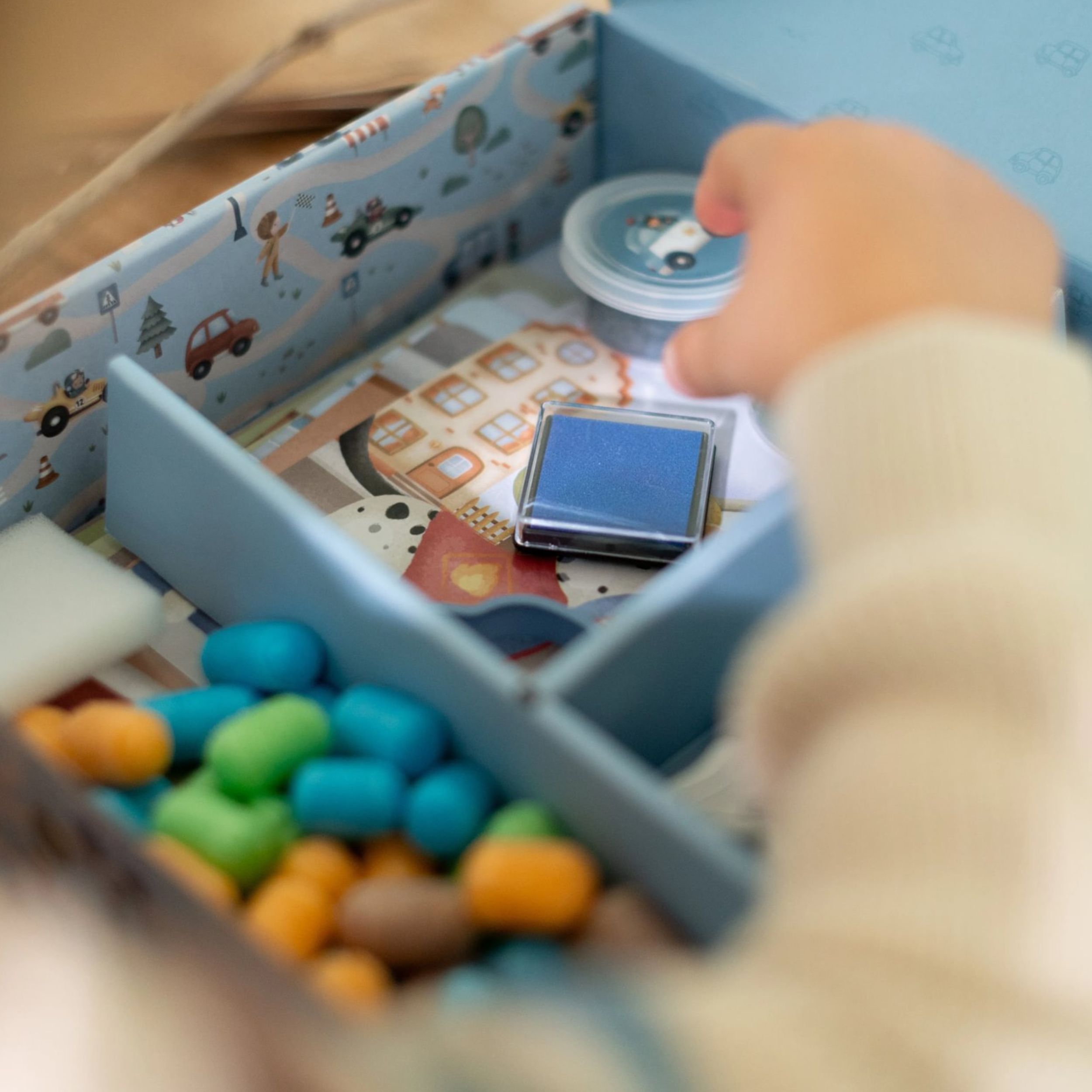Deschide usa catre o lume a creativitatii cu aceasta cutie vesela plina de materiale esentiale pentru activitati de lucru manual. Conceputa in nuante pastelate delicate, specifice Little Dutch, cutia include tot ce are nevoie un copil pentru a crea, desena si experimenta: hartie colorata, creioane, vopsea, plastilina spumoasa, stampile si stickere.