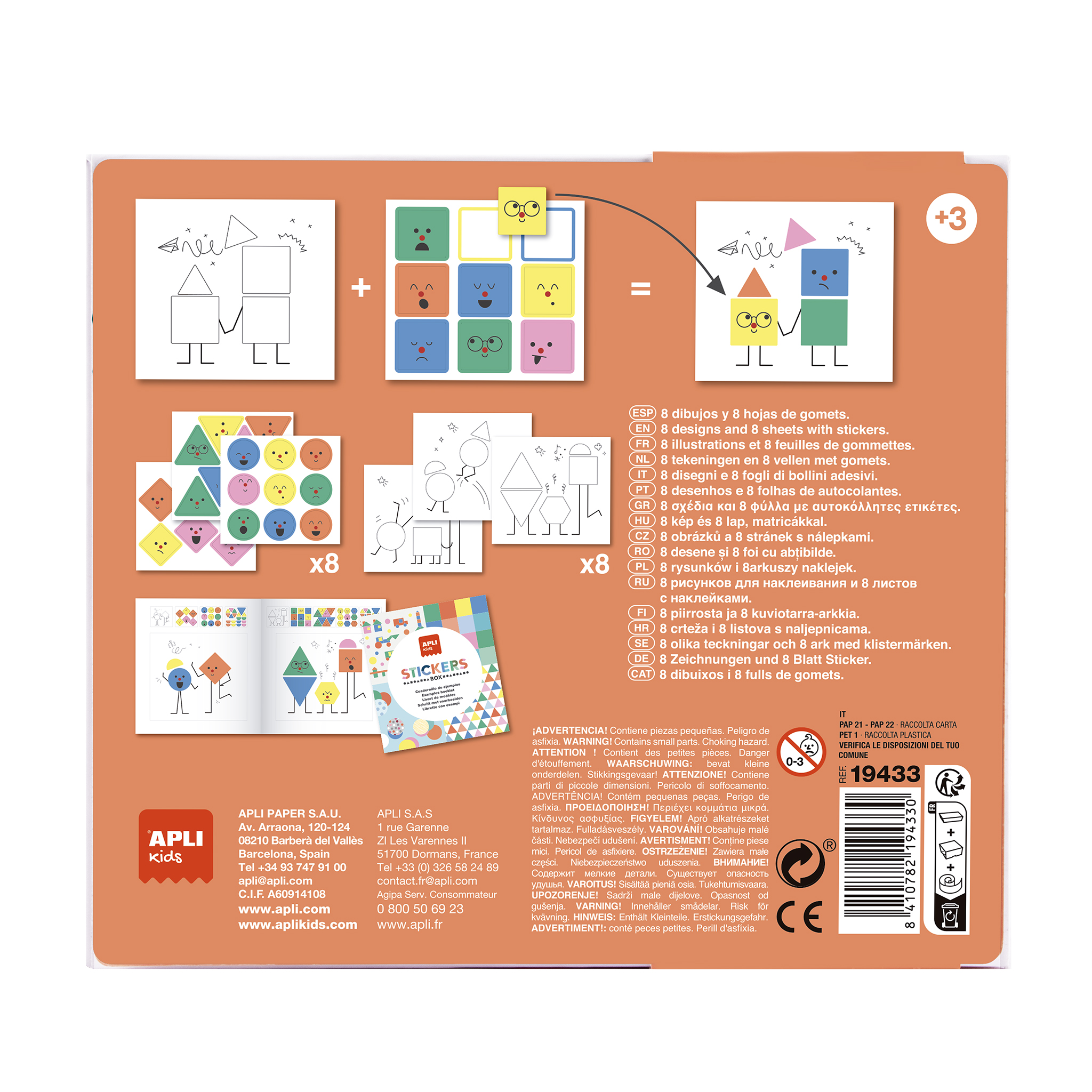 Apli Kids – Cutia mea de Stickere Forme Geometrice Emotii este un joc educativ creat pentru dezvoltarea abilitatilor de invatare ale copiilor cu varsta de peste 3 ani. Conceput cu sprijinul educatorilor, setul ii ajuta pe cei mici sa descopere formele geometrice si emotii diferite prin activitati creative si distractive. Fiecare carton contine ilustratii ce pot fi completate cu stickere reutilizabile, incurajand copilul sa observe, sa potriveasca si sa creeze singur. Cutia compacta si materialele rezistente il fac ideal pentru acasa, gradinita sau activitati de calatorie.