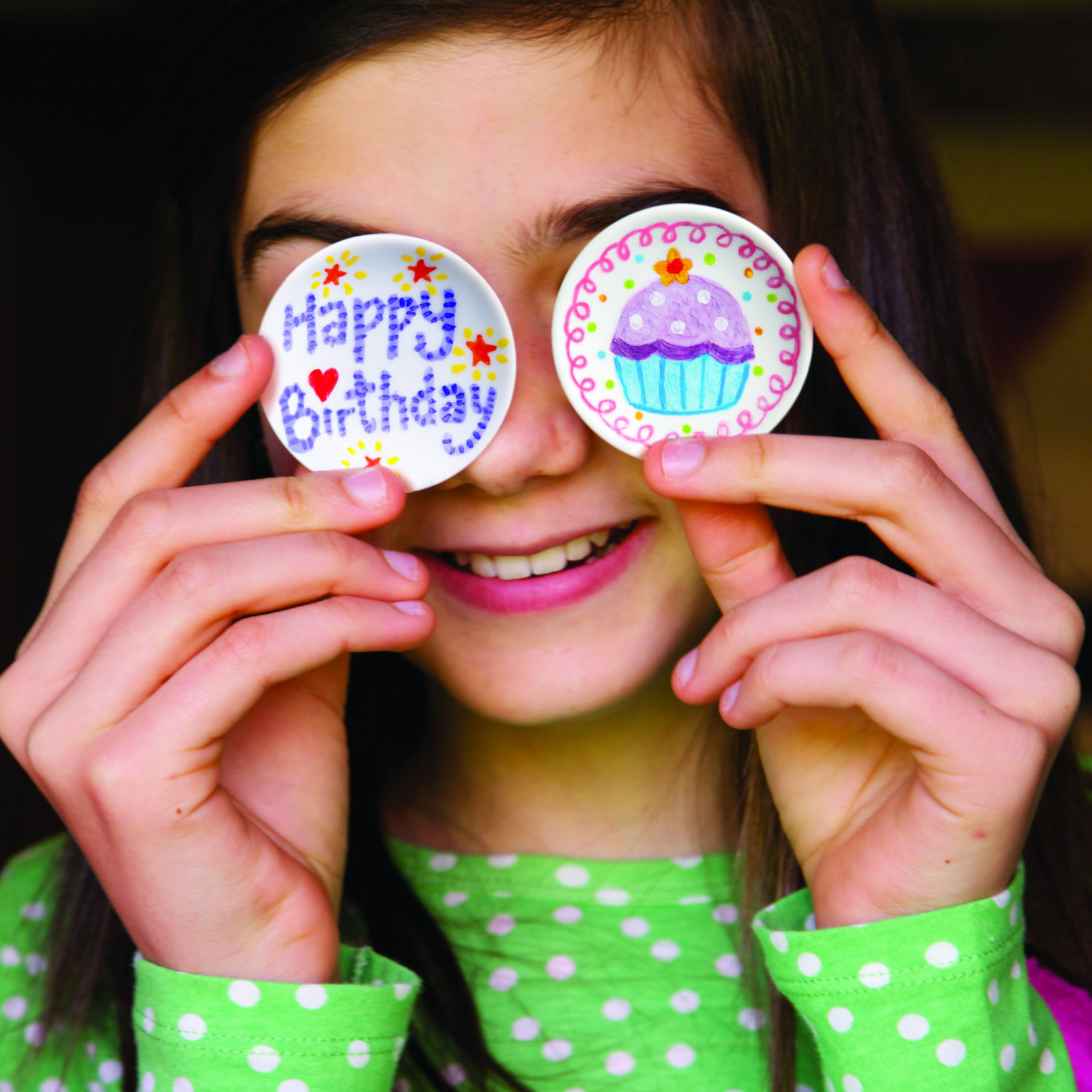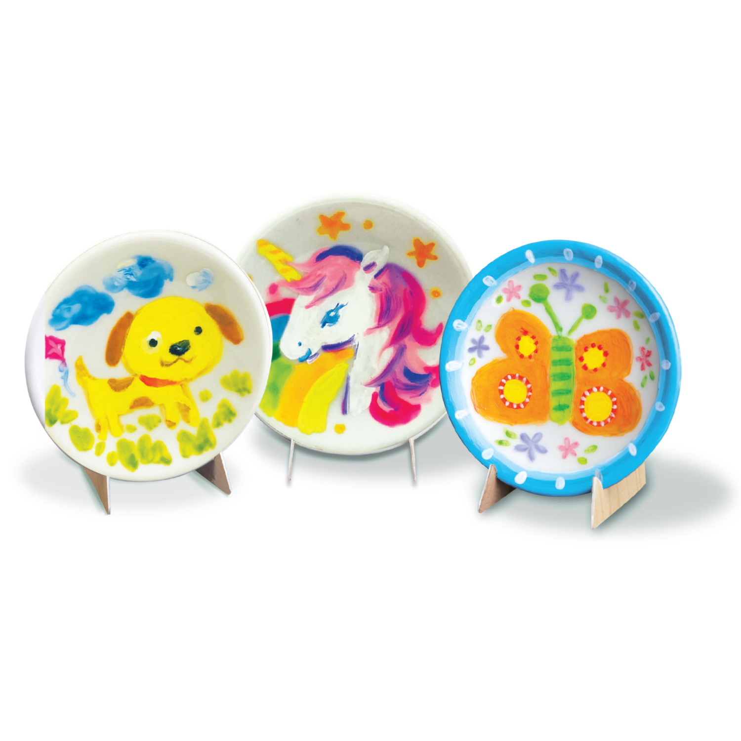 Conținut set: 3 farfurii din porțelan, 3 suporturi pentru carduri, 1 bandă de vopsea, 1 pensulă.