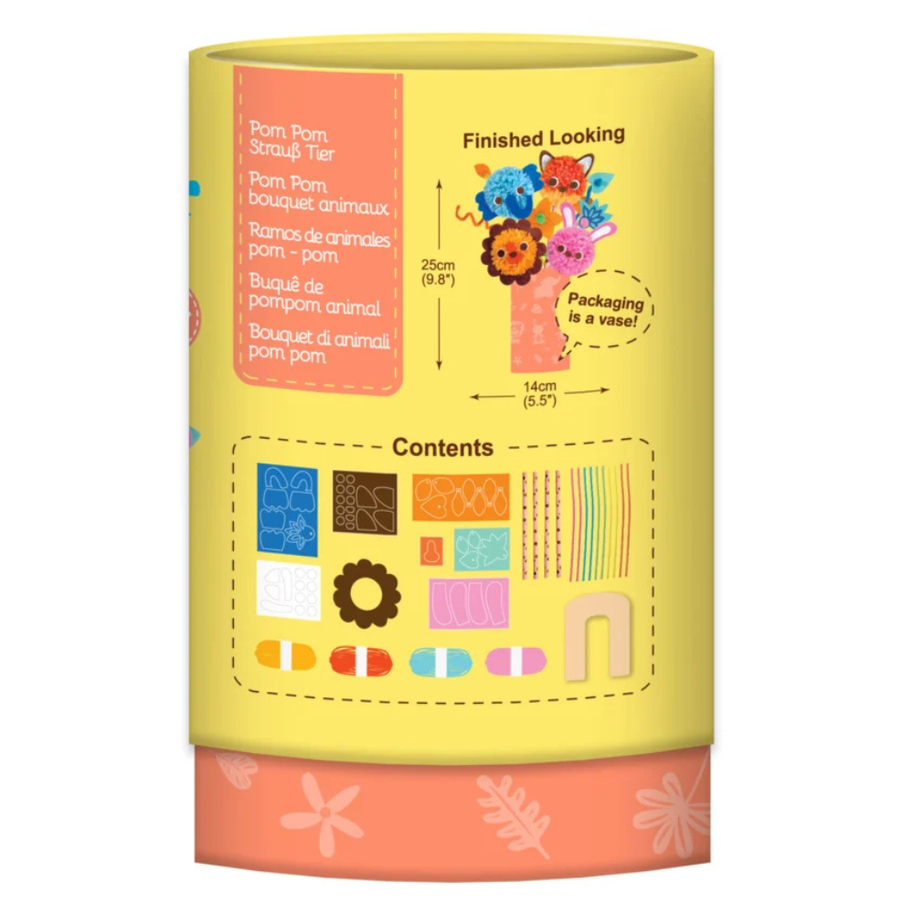 Setul creativ Pom Pom – Buchet animalute de la Avenir transforma joaca intr-o experienta creativa si educativa, ideala pentru copiii cu varsta de peste 5 ani. Folosind tehnica pom-pom, cei mici pot crea un buchet adorabil de animalute simpatice, precum vulpi, catei sau unicorni. Setul contine toate materialele necesare si instructiuni clare, pas cu pas, incurajand imaginatia, indemanarea si bucuria de a crea obiecte handmade. Este o activitate perfecta pentru timp liber, joaca individuala sau activitati creative alaturi de familie.