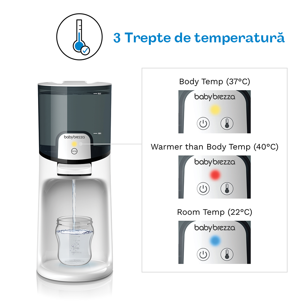 Cu trei setări de temperatură – la temperatura camerei, temperatura corpului sau puțin mai caldă – poți alege oricând opțiunea potrivită pentru confortul bebelușului tău. Rezervorul etanș de 1,48 litri oferă suficientă apă pentru mai multe biberoane consecutive, iar designul compact îl face ideal pentru orice bucătărie sau colț de hrănire.