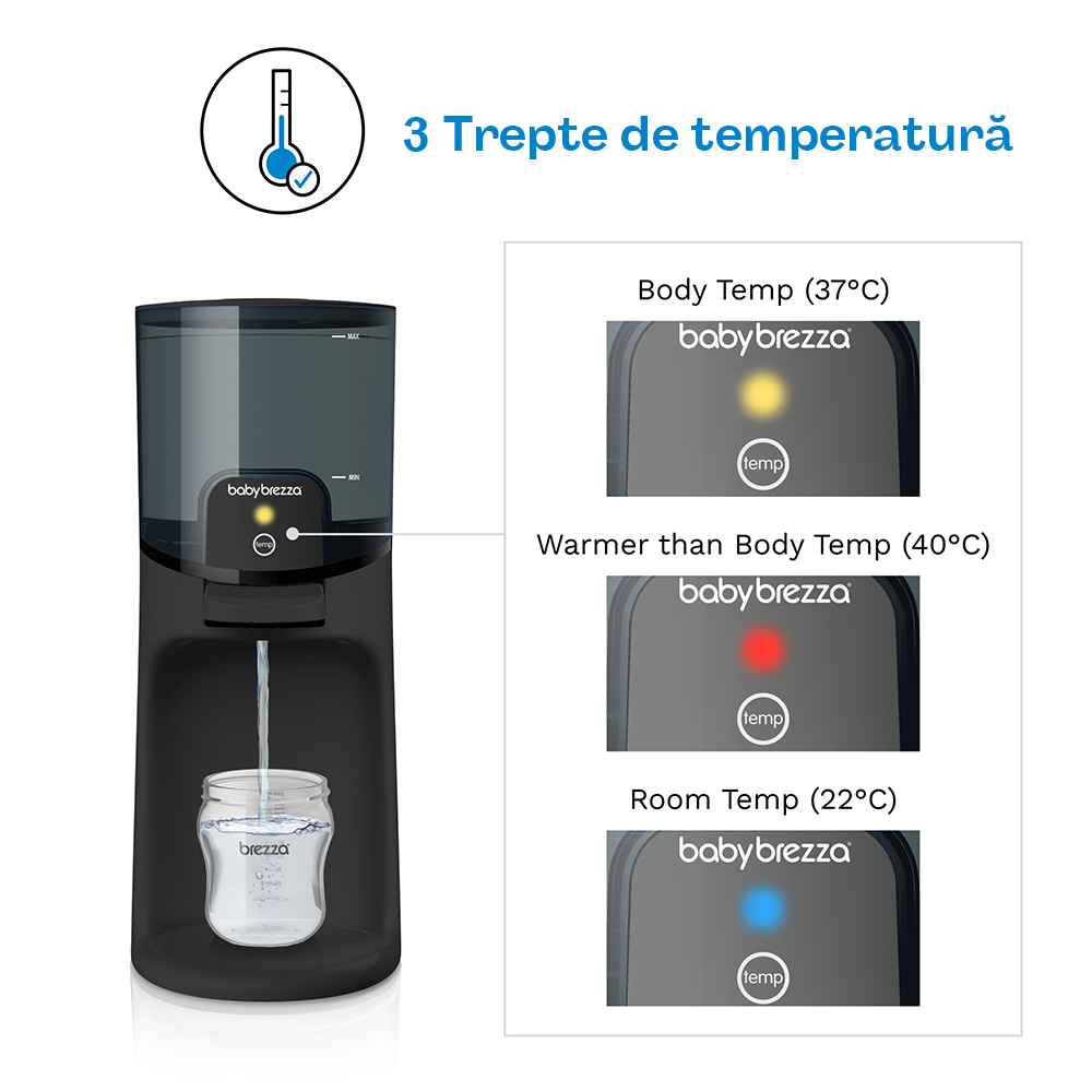 Cu trei setări de temperatură – la temperatura camerei, temperatura corpului sau puțin mai caldă – poți alege oricând opțiunea potrivită pentru confortul bebelușului tău. Rezervorul etanș de 1,48 litri oferă suficientă apă pentru mai multe biberoane consecutive, iar designul compact îl face ideal pentru orice bucătărie sau colț de hrănire.