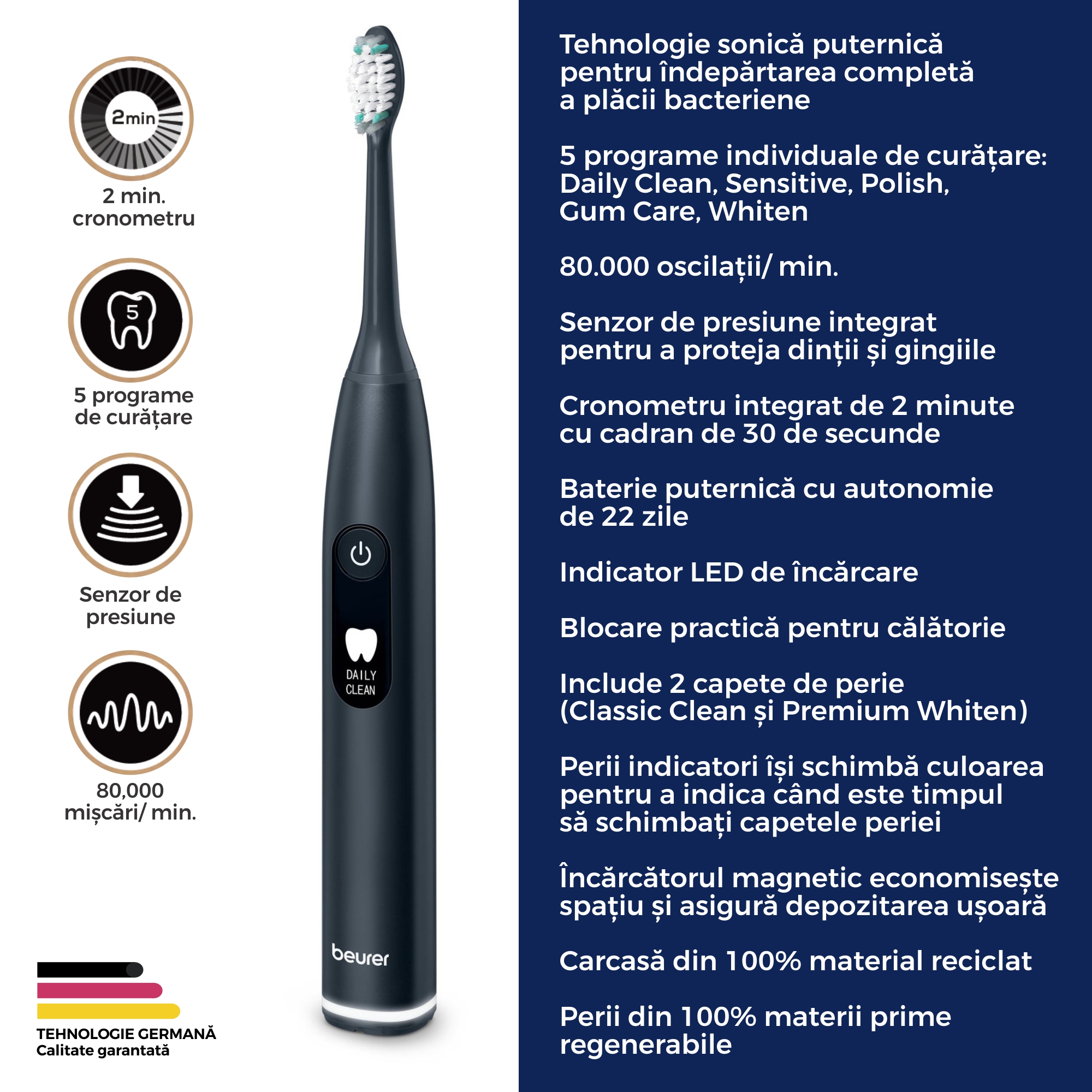 Ultima actualizare a informatiilor de prezentare pentru Periuta de dinti electrica sonica, Midnight Ink, SC 50, Beurer a fost efectuata la data de 17-04-2026.
