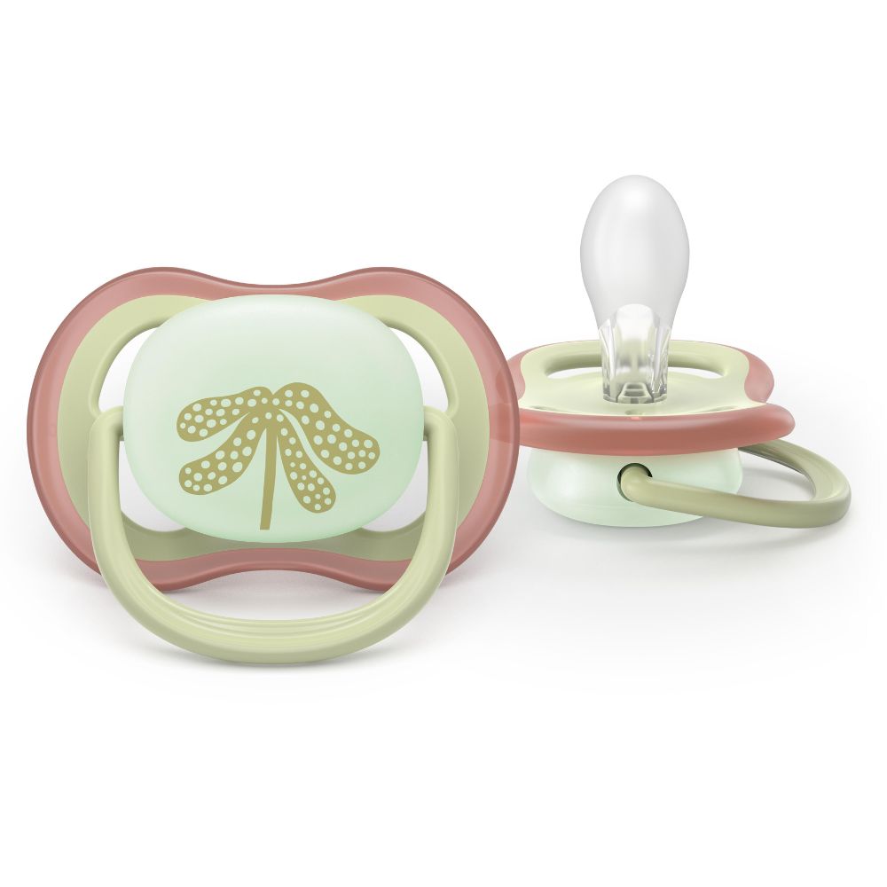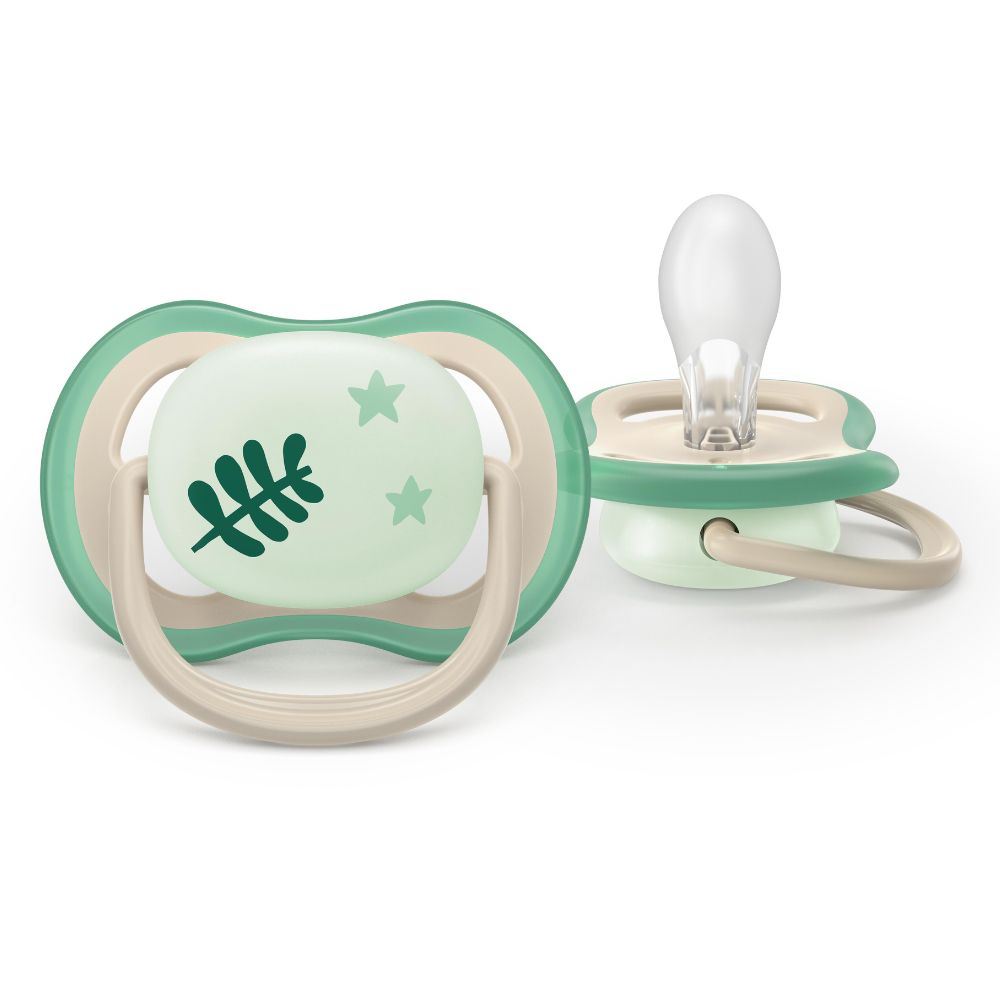 Suzete fosforescente Ultra Air, Plante, 6-18 luni, SCF376/31, 2 buc, Philips Avent