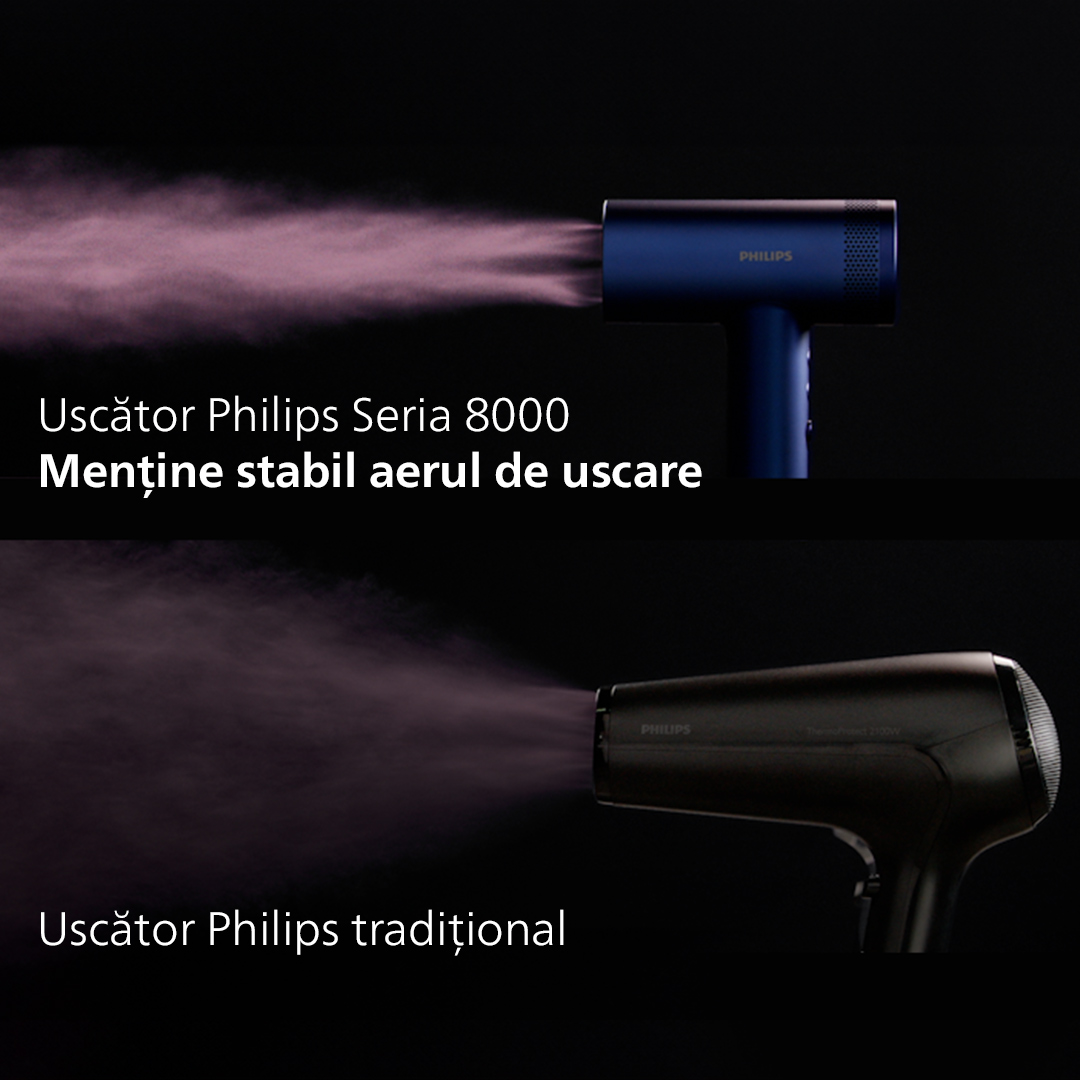 Un uscător de păr care face diferența în rutina ta zilnică! Recomand Philips Seria 8000 pentru că oferă o uscare rapidă în mai puțin de 3 minute, protejând în același timp firul de păr datorită tehnologiei ThermoShield Advanced. Motorul puternic și fluxul de aer ultra-stabil reduc timpul de coafare, menținând părul neted, strălucitor și sănătos. Indiferent de tipul tău de păr, acesta este un aliat de încredere pentru un styling eficient și fără compromisuri!