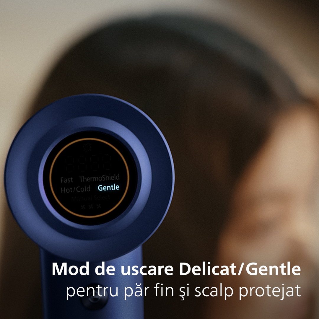 Conceput pentru a fi blând, are grijă suplimentară de scalp și de părul fin, folosind temperaturi mai scăzute și un flux de aer delicat.