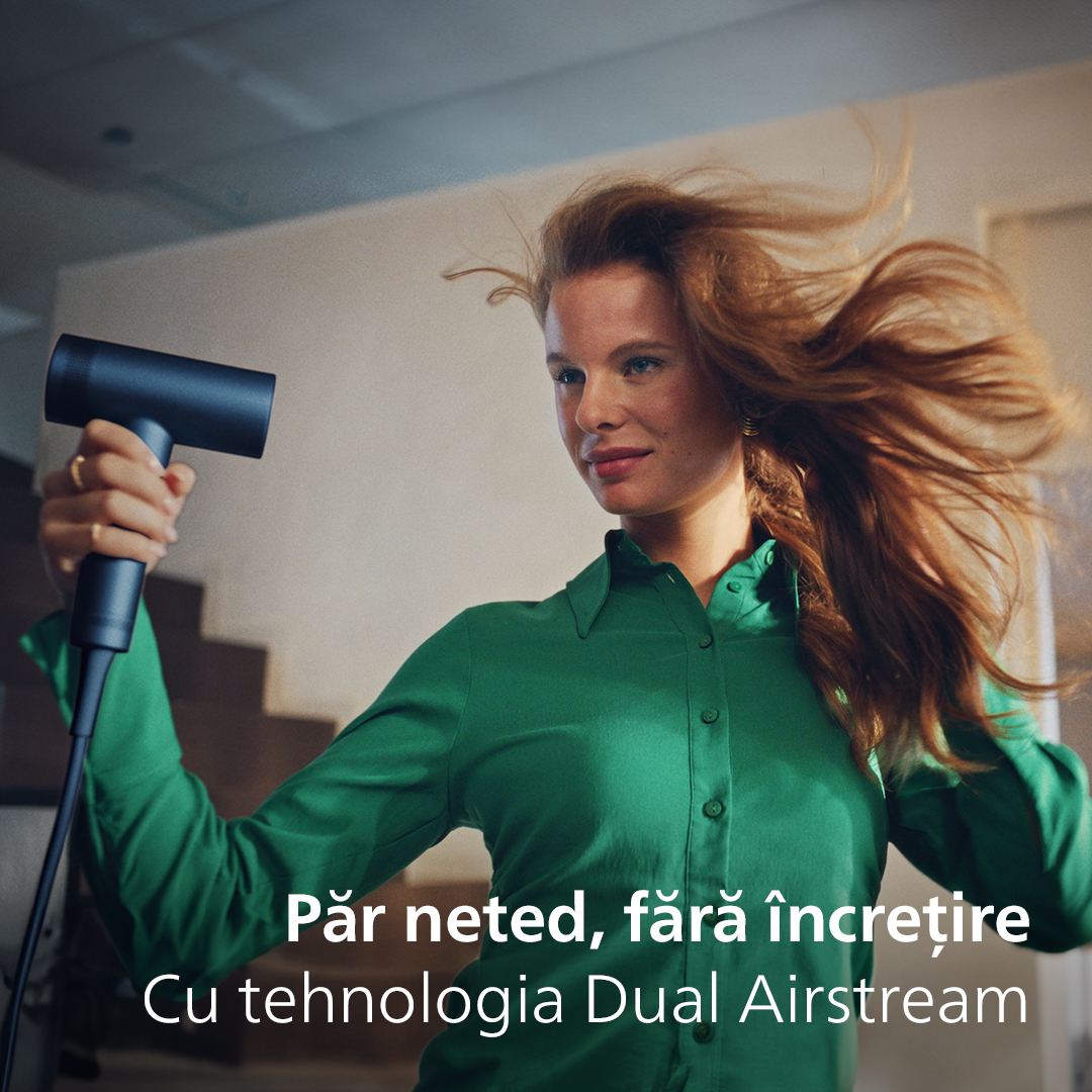 Sporeşte strălucirea și reduce efectul de frizz datorită tehnologiei Dual Airstream, care atrage aer prin două orificii simultan și îl concentrează într-un flux stabil şi puternic de aer de uscare.