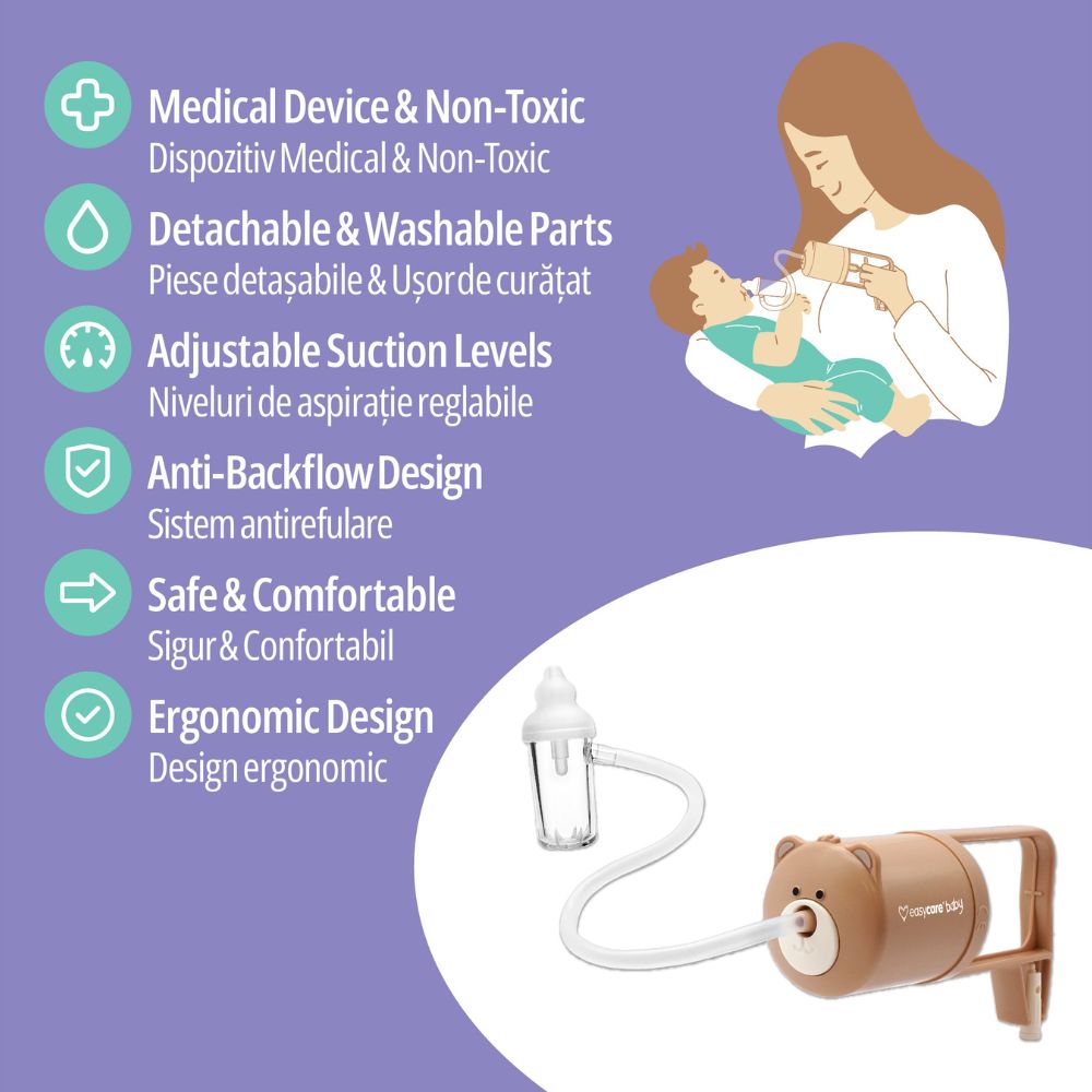 Aspiratorul nazal cu pompă manuală EasyCare Baby este un dispozitiv medical sigur și eficient, conceput special pentru îndepărtarea delicată a secrețiilor nazale la bebeluși încă din primele zile de viață.