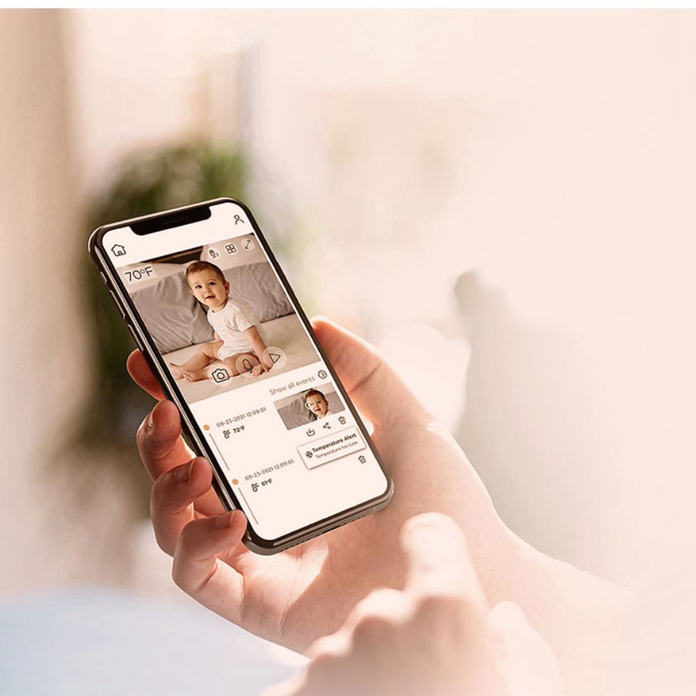 - Detectează automat sunete, mișcări și schimbări de temperatură, trimițând alerte instant