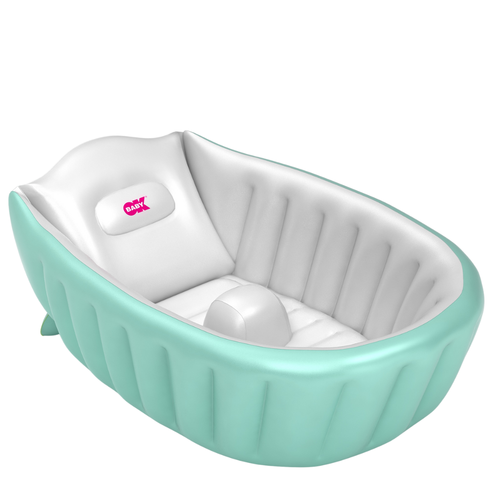 OkBaby Onda Baby Soft este o cadă gonflabilă compactă și ergonomică, concepută pentru confortul și siguranța bebelușului în timpul băiței.