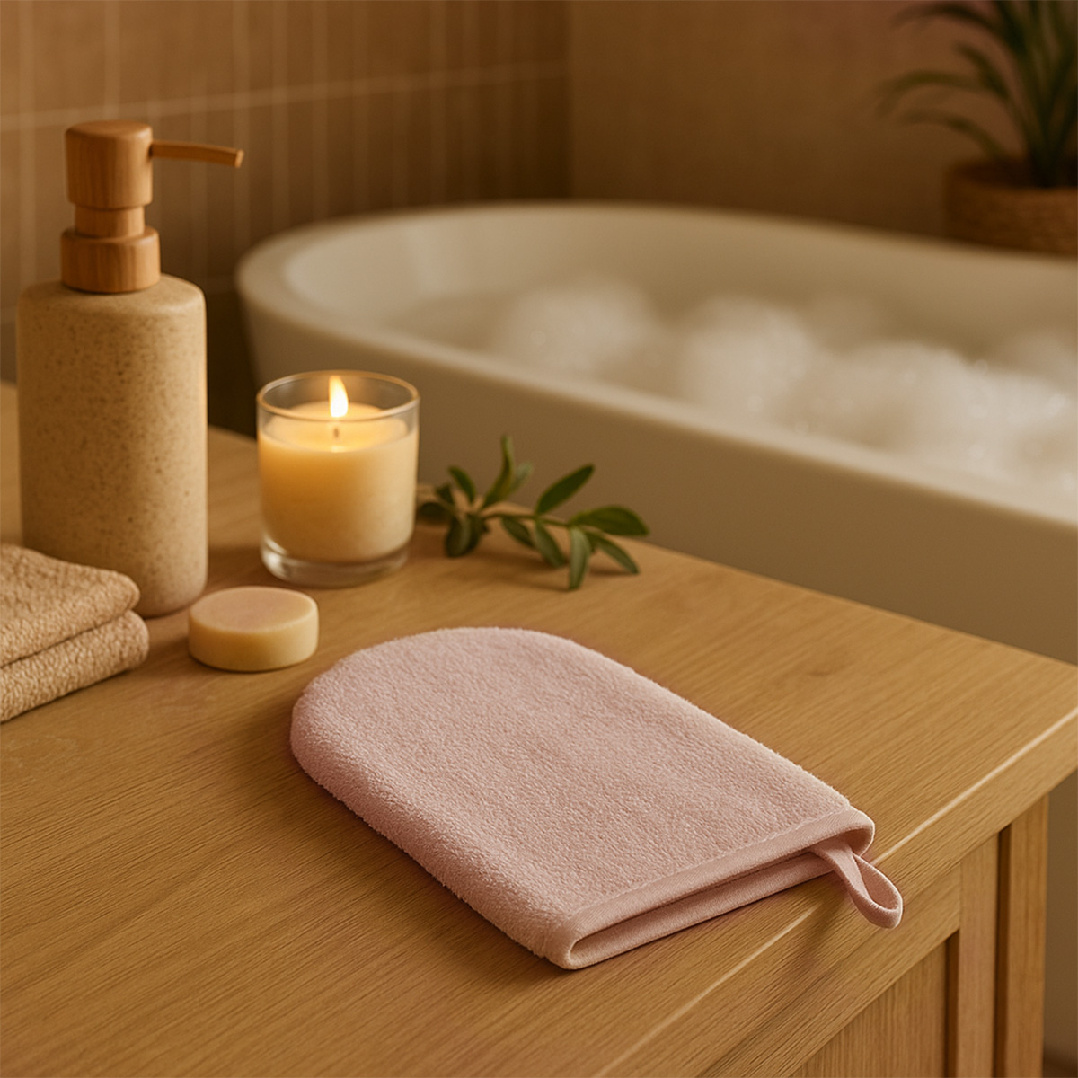 Manusa de baie din fibra de bambus, Roz, 1 bucata, Babyono