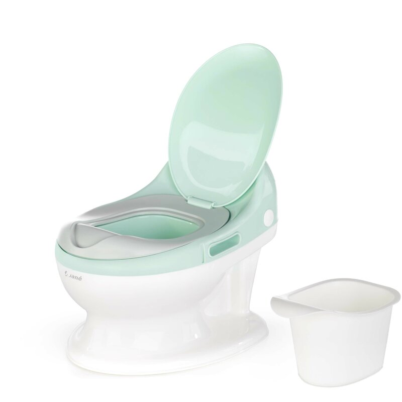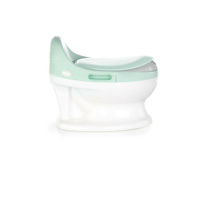 Olita Minitoaleta Jane Soft cu sunete, culoare Mint, este solutia ideala pentru copiii care fac tranzitia de la scutece la toaleta. Cu un design realist, asemanator unei toalete pentru adulti, dar adaptat perfect dimensiunilor copilului, aceasta olita transforma invatarea intr-o experienta naturala, sigura si distractiva. Dupa utilizare, copilul poate apasa un buton care reda sunetul realist de clatire, incurajandu-l sa imite comportamentele adultilor si sa dobandeasca independenta. Confortabila, stabila si usor de curatat, olita Jane este perfecta pentru primele lectii de autonomie.