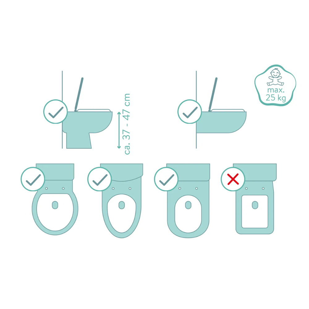 - Tranziție ușoară la toaletă – ajută copilul să se adapteze mai rapid la folosirea toaletei pentru adulți.