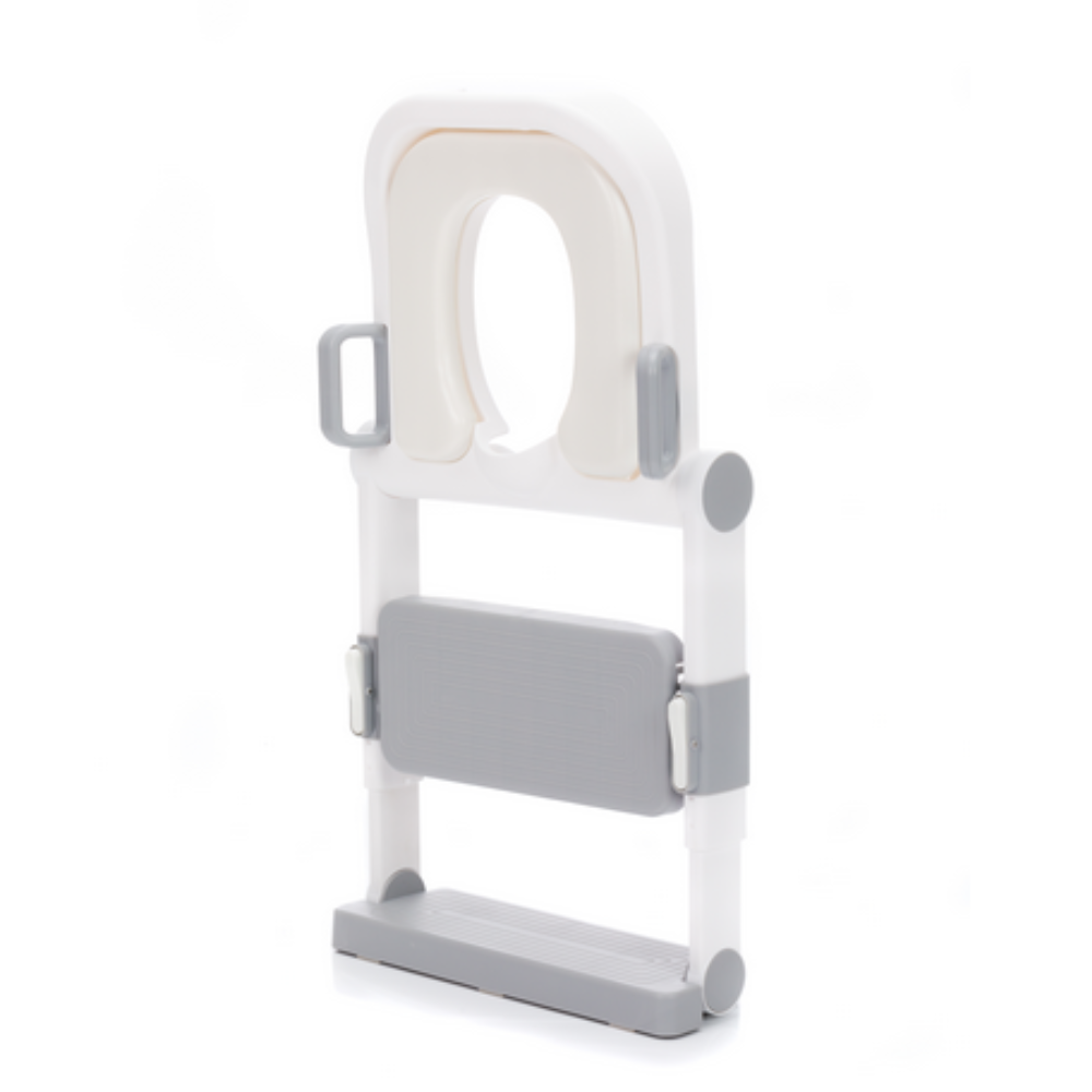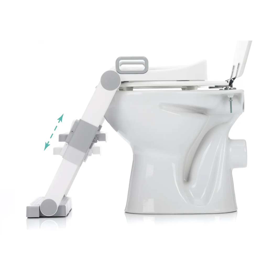 - Așază scara pe toaleta standard și reglează înălțimea pentru a se potrivi perfect.