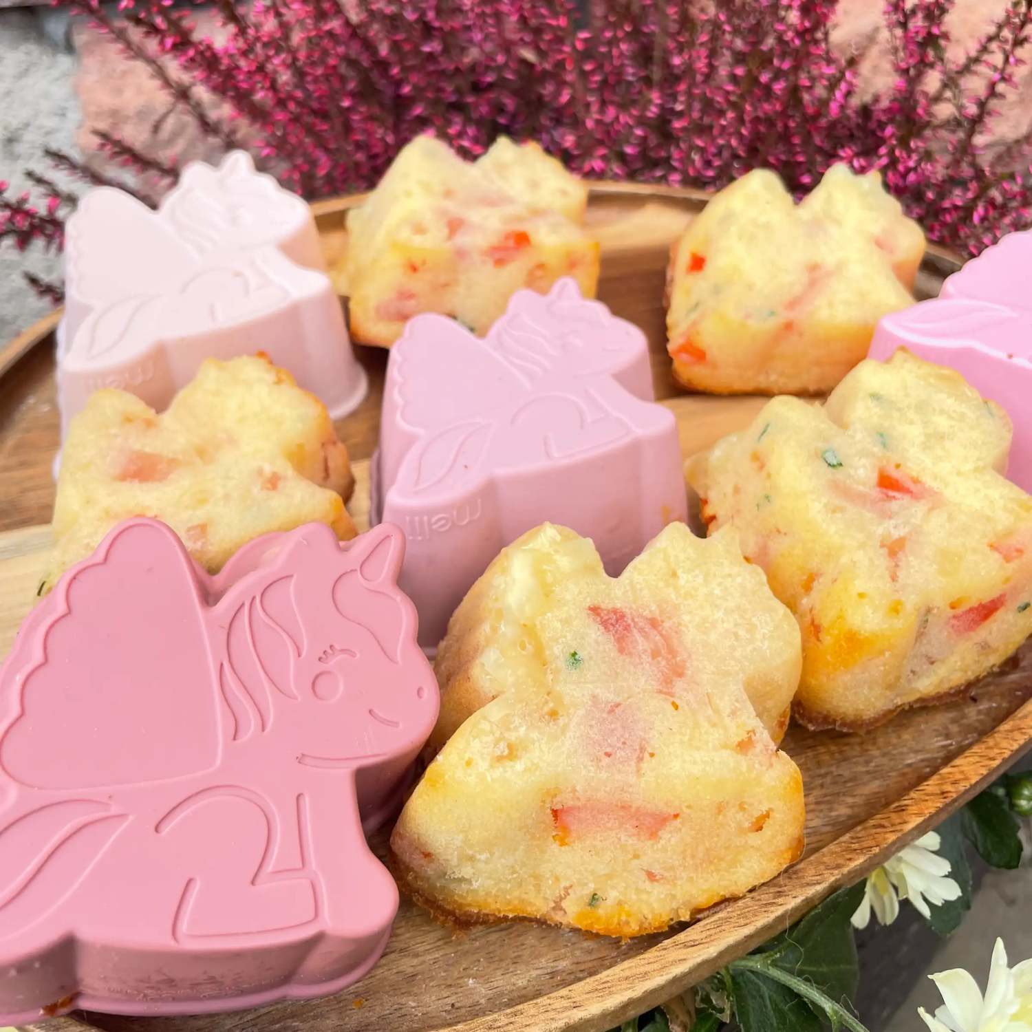 Setul de 6 forme de gătit din silicon MELII, cu adorabilul design unicorn, transformă mesele și gustările copiilor într-o experiență veselă și organizată. Aceste forme sunt ideale pentru separarea alimentelor, gustărilor și sosurilor, evitând amestecarea lor în farfurii, caserole sau pachețelele pentru școală.