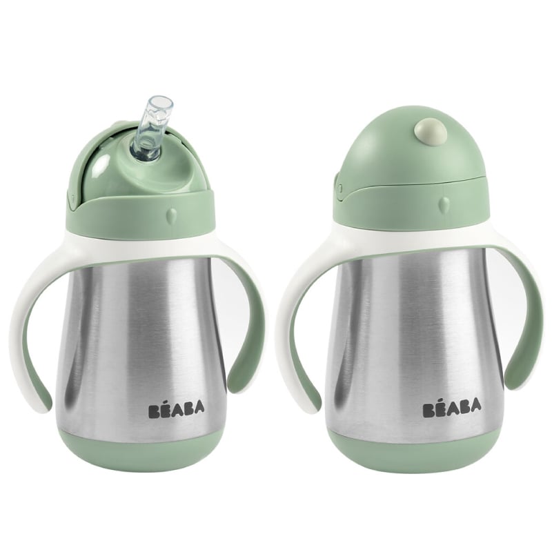 Cana cu pai din inox, Sage Green, 8 luni+, 250 ml, Beaba [3384349135355]