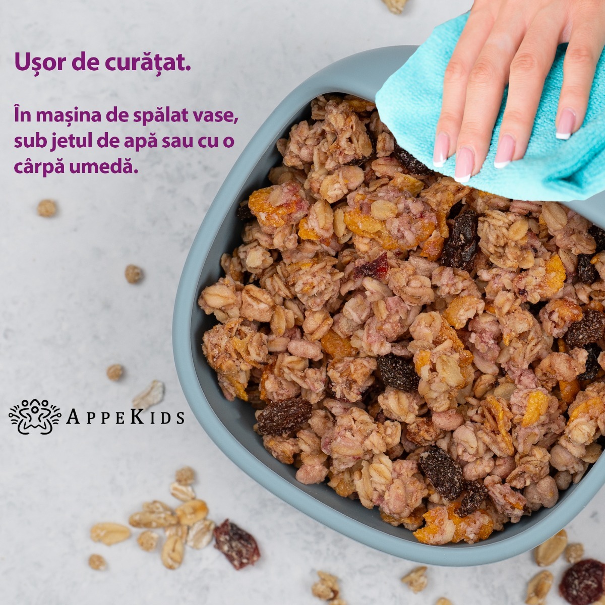 Folosind cele mai noi si moderne tehnologii, un design futurist, materiale durabile si de calitate, am creat vesela pentru diversificare si hranire bebelusi si copii, folosind silicon alimentar de cea mai buna calitate, certificat de Food and Drug Administration (FDA) USA si LFGB (german food contact material). Produsele noastre sunt testate în unități independente de renume mondial împotriva oricăror substanțe chimice dăunătoare și pentru siguranța fizică/mecanică.